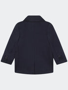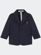 Giacca tinta unita Punto Milano con due bottoni e tasche sul fondo. Taschino lato cuore con etichetta tricolor