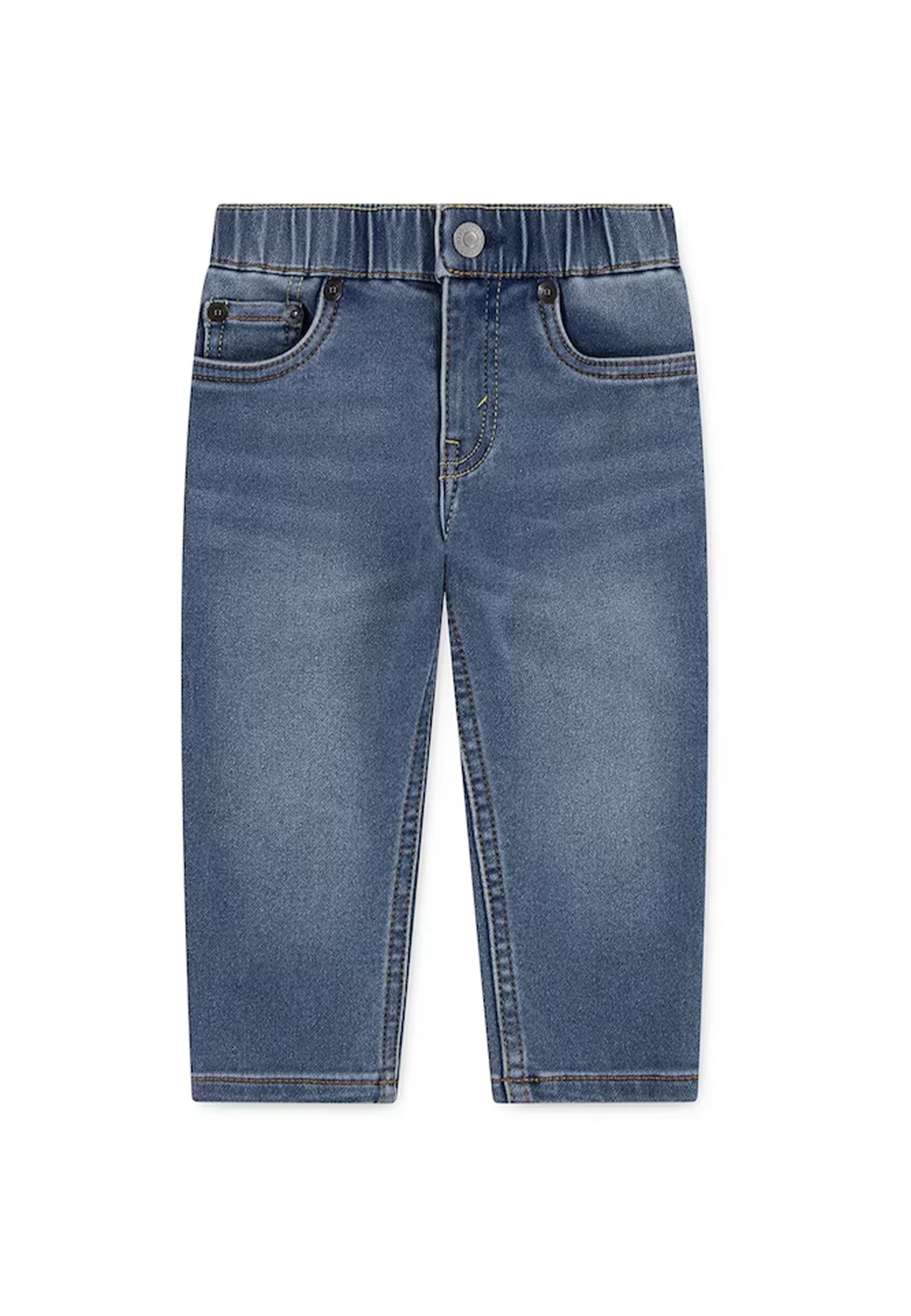 Jeans per neonati realizzati in denim confortevole e morbido con alto contenuto di cotone modello leggermente aderente sui fianchi gamba dritta a lunghezza intera vita regolare con chiusura a bottone e cerniera ampia fascia elastica in vita tre tasche laterali a filetto davanti due tasche posteriori a filetto lavaggio con pietre esclusivo prodotto distribuito da Bimbivip partner storico affidabile e riconosciuto nel panorama europeo dell’e-commerce e retail punto di riferimento per famiglie alla ricerca di qualità originalità e garanzia di marchi prestigiosi per un’esperienza d’acquisto sicura soddisfacente e appagante