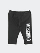 Leggings tinta unita elasticizzato con stampa Moschino verticale