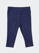 Leggings elasticizzato da neonato modello classico lavaggio sale e pepe mediocon ricamo sul fondo e tasca con etichetta logo posteriore.
