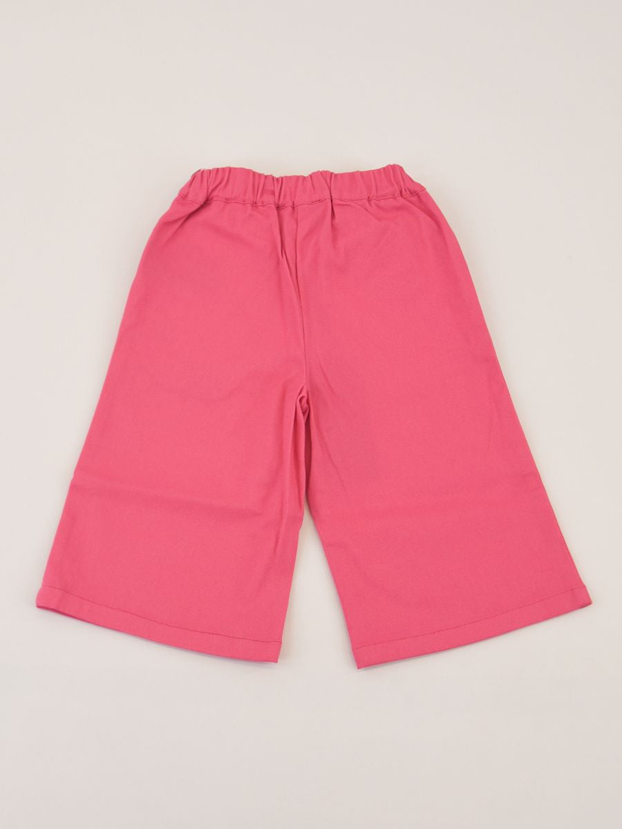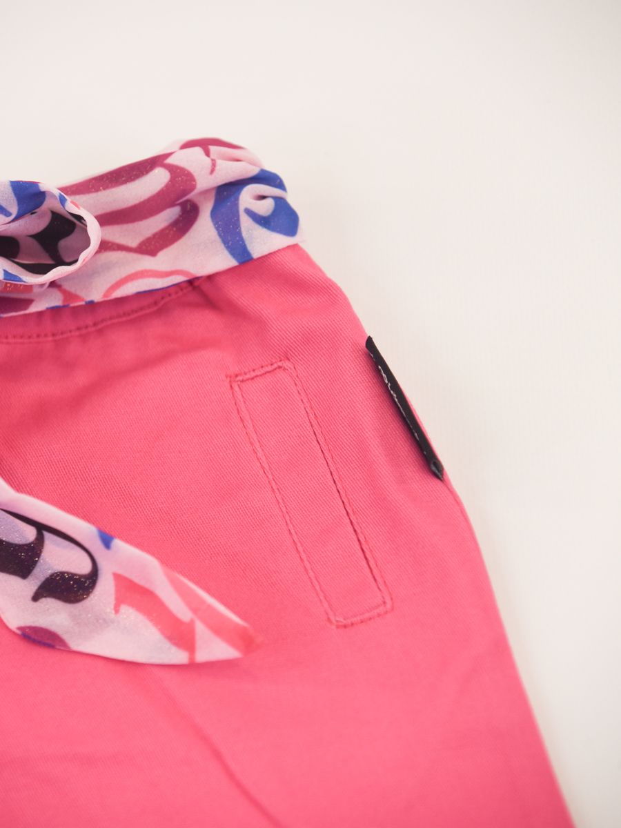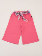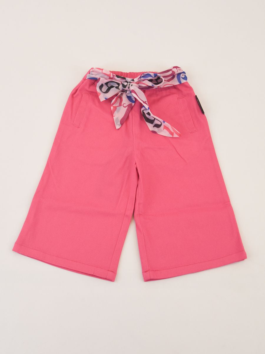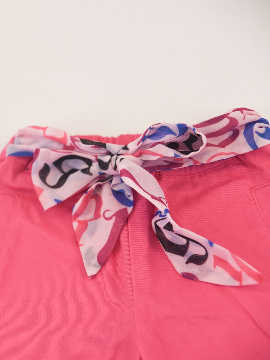 Pantalone a taglio largo tinta unita con tasche frontali e girovita elastico con cintura a fantasia in tulle