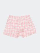 Shorts in tessuto a fantasia abbinabile con la giacca. Tasche frontali e fondo non rifinito