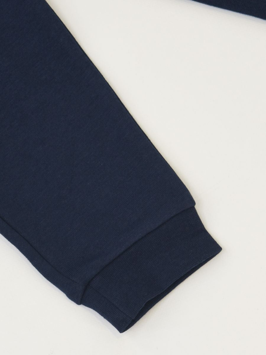 Tuta sportiva composta da felpa girocollo con il logo iconico ricamato sul cuore. Polsini e vita elasticizzati. Jogging sportivo con elastico in vita e mini ricamo logo laterale.
