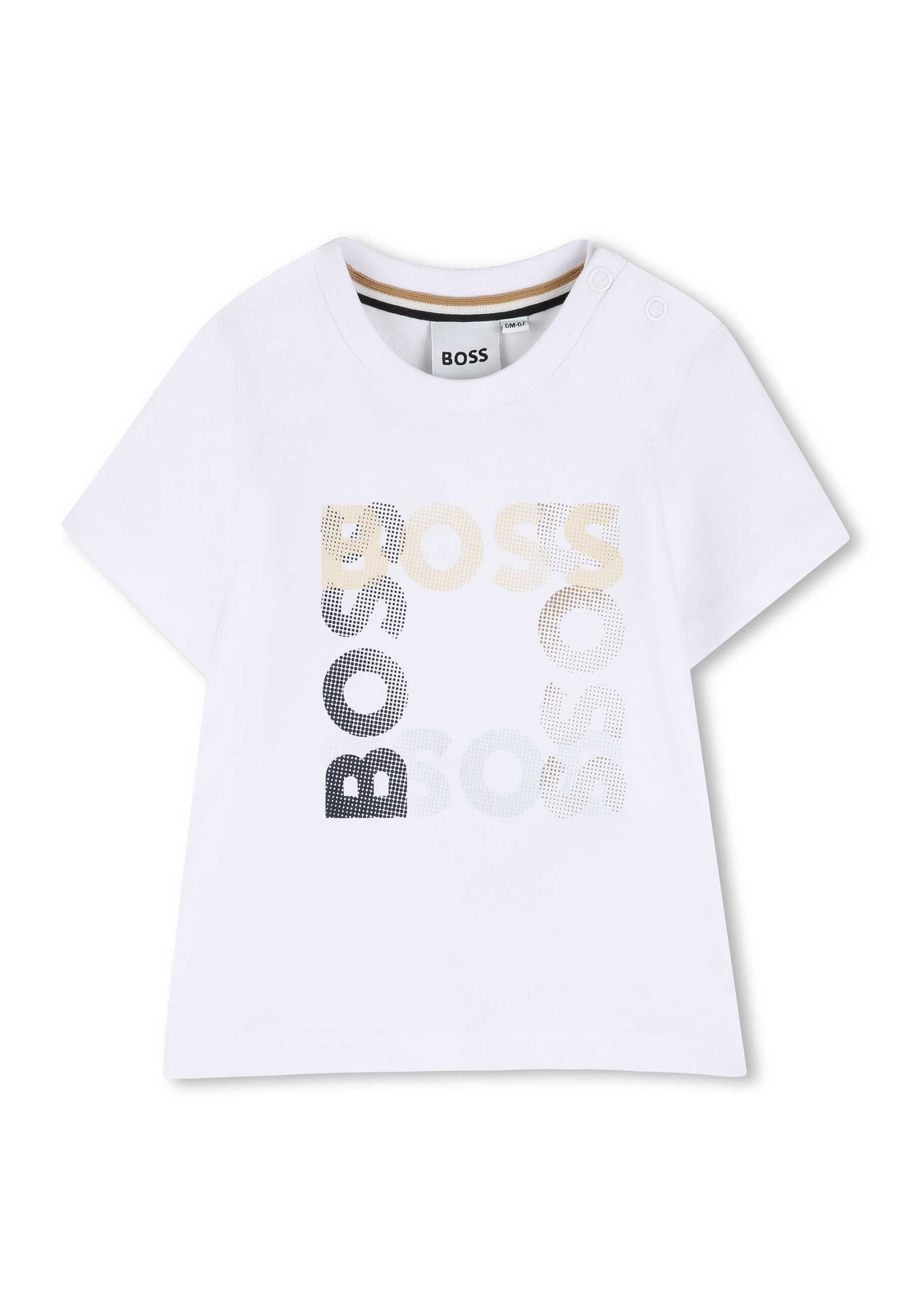 T-shirt T shirt a maniche corte in jersey di cotone con loghi BOSS. Chiusura con bottone a pressione sulla spalla. Istruzioni per la cura Lavare in lavatrice a freddo Non candeggiare Non asciugare in asciugatrice Stirare a freddo Non lavare a secco Prodotto esclusivo distribuito da Bimbivip partner storico affidabile e autorevole nel panorama europeo ecommerce e retail punto di riferimento per le famiglie che cercano qualità autenticità e marchi prestigiosi Bimbivip assicura esperienza di acquisto sicura trasparente e gratificante con attenzione al cliente cura nella selezione e garanzia di originalità per uno shopping sereno e di valore