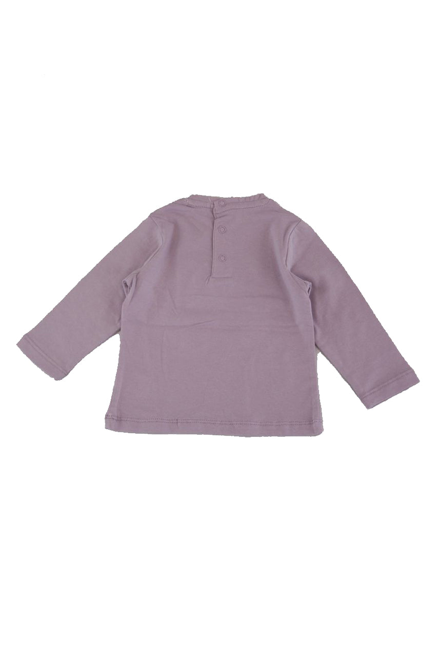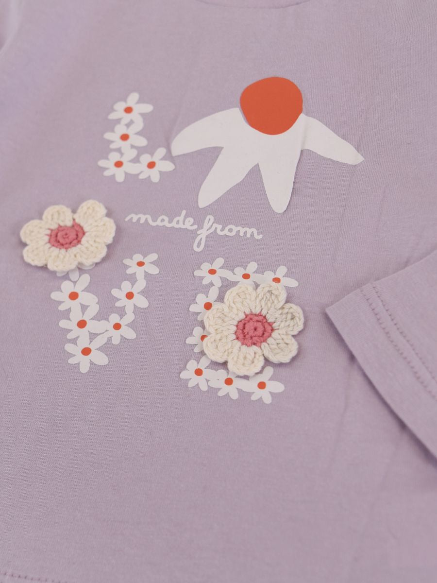 T-shirt con Stampa frontale con fiori applicati. Bottoni a pressione nel retro
