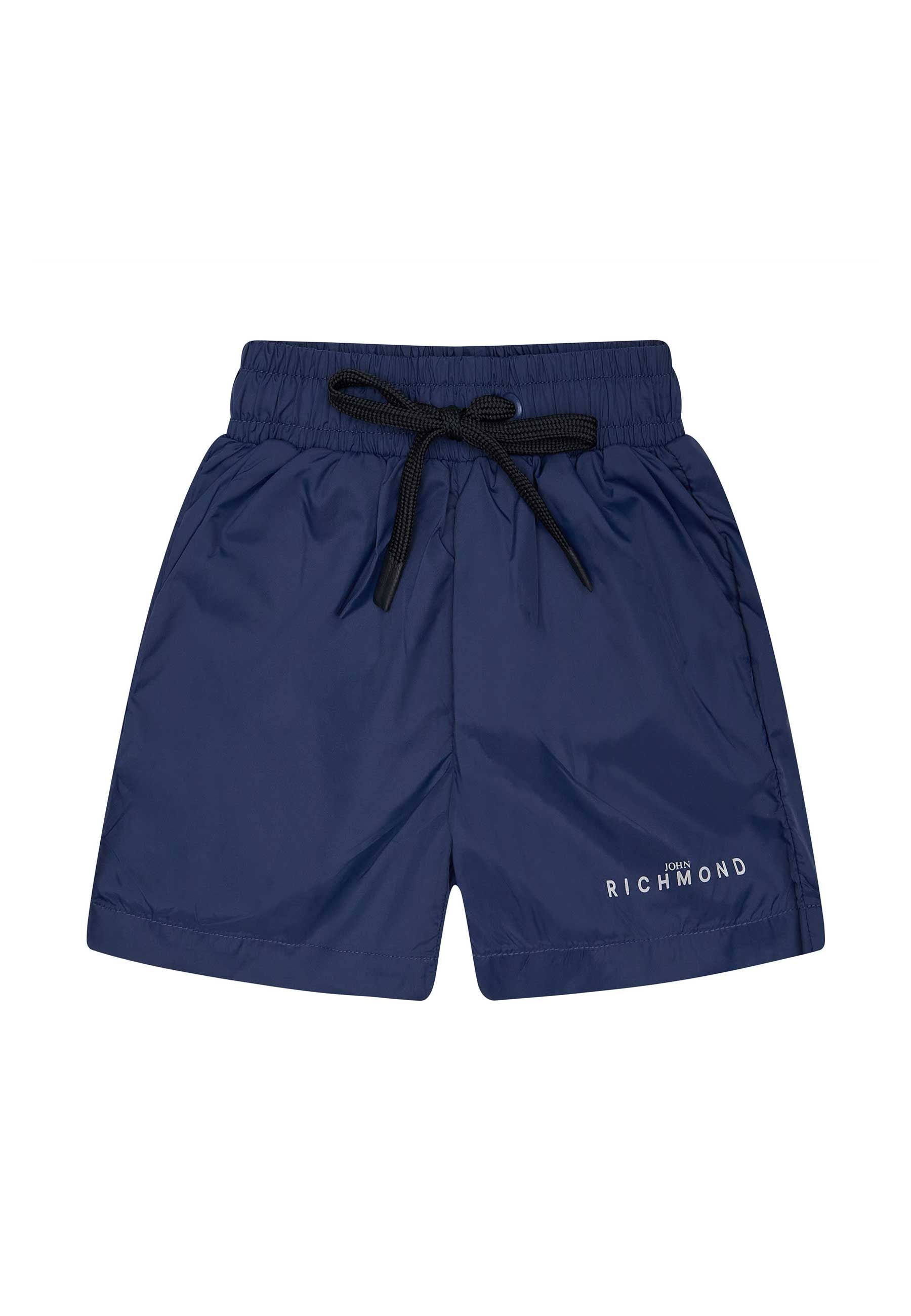 Costume collezione Primavera/Estate è un boxer da mare realizzato in 100% poliestere un tessuto tecnico leggero ad asciugatura rapida. Design: Colore blu con logo "Richmond" lettering a contrasto sulla gamba.Vestibilità: Vita elasticizzata con coulisse regolabile nera per un comfort ottimale.Dettagli: Spesso include uno slip interno in microrete e tasche laterali