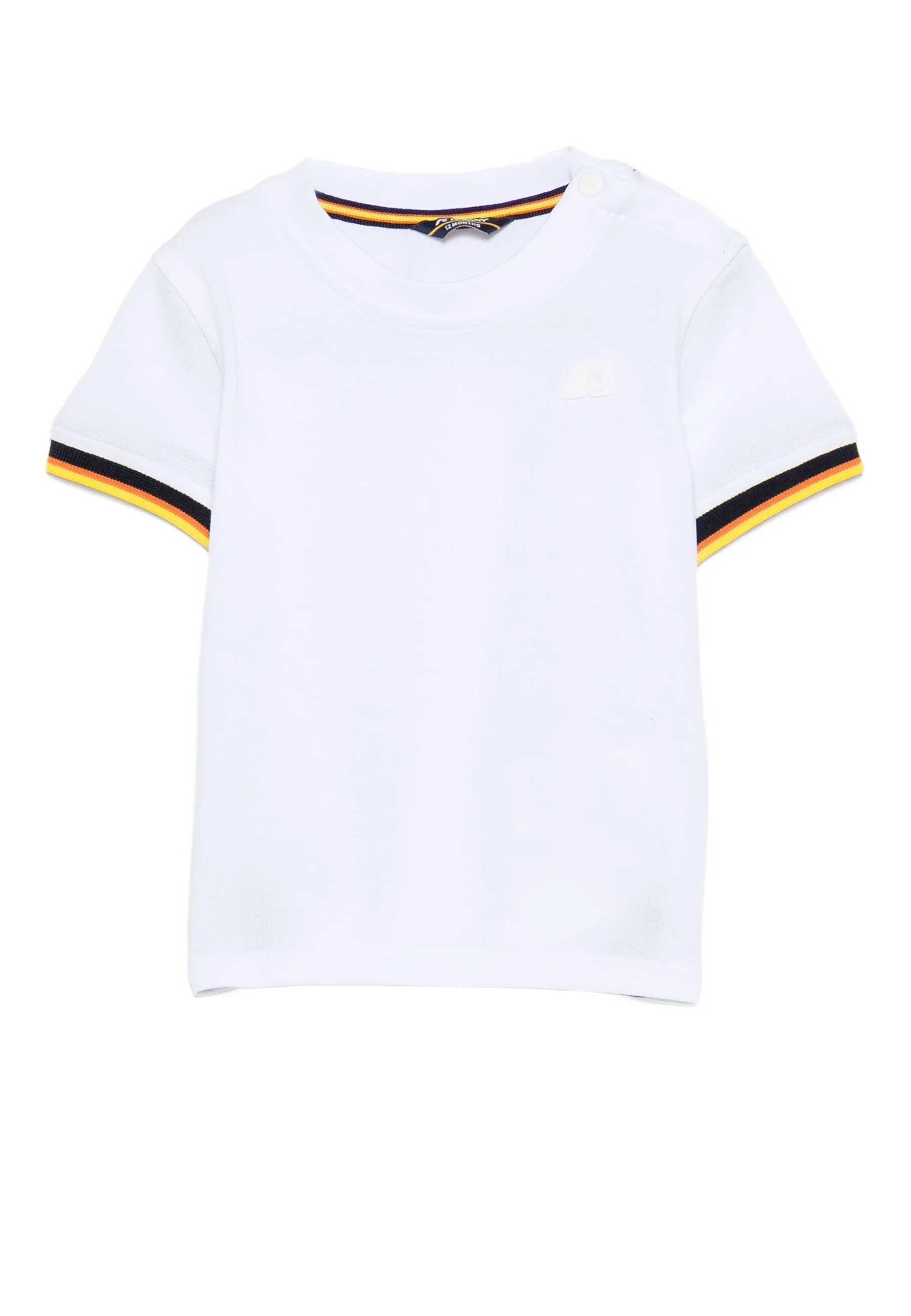 T-shirt Prodotto esclusivo distribuito da Bimbivip partner storico affidabile e autorevole nel panorama europeo ecommerce e retail punto di riferimento per le famiglie che cercano qualità autenticità e marchi prestigiosi Bimbivip garantisce esperienza di acquisto sicura trasparente e gratificante con attenzione al cliente cura nella selezione e garanzia di originalità per uno shopping sereno e di valore.La t-shirt Kway Pete per bambini realizzata in cotone pique elasticizzato si distingue per il bordo giromanica rigato a contrasto collo a giro maniche corte e apertura con bottoni sulla spalla offrendo libertà di movimento comfort e praticità Il fitting regolare e il logo in silicone bianco completano un capo versatile resistente e raffinato ideale per accompagnare i bambini nei giochi quotidiani con stile e sicurezza