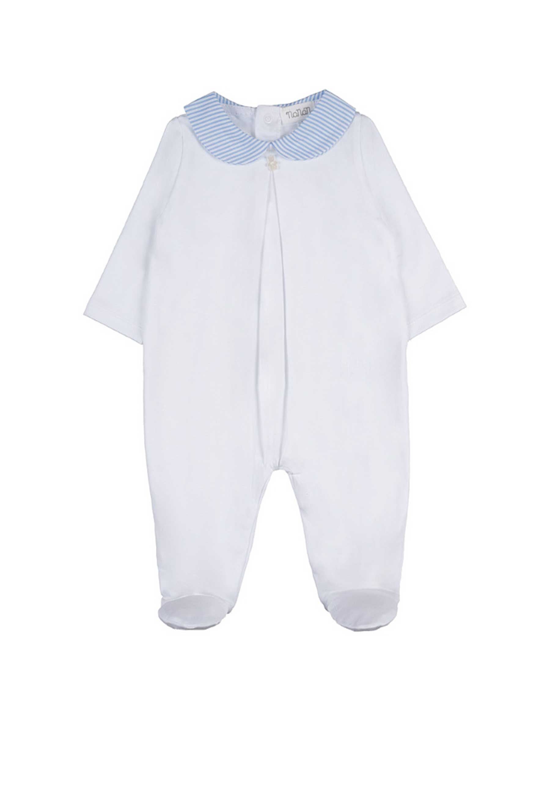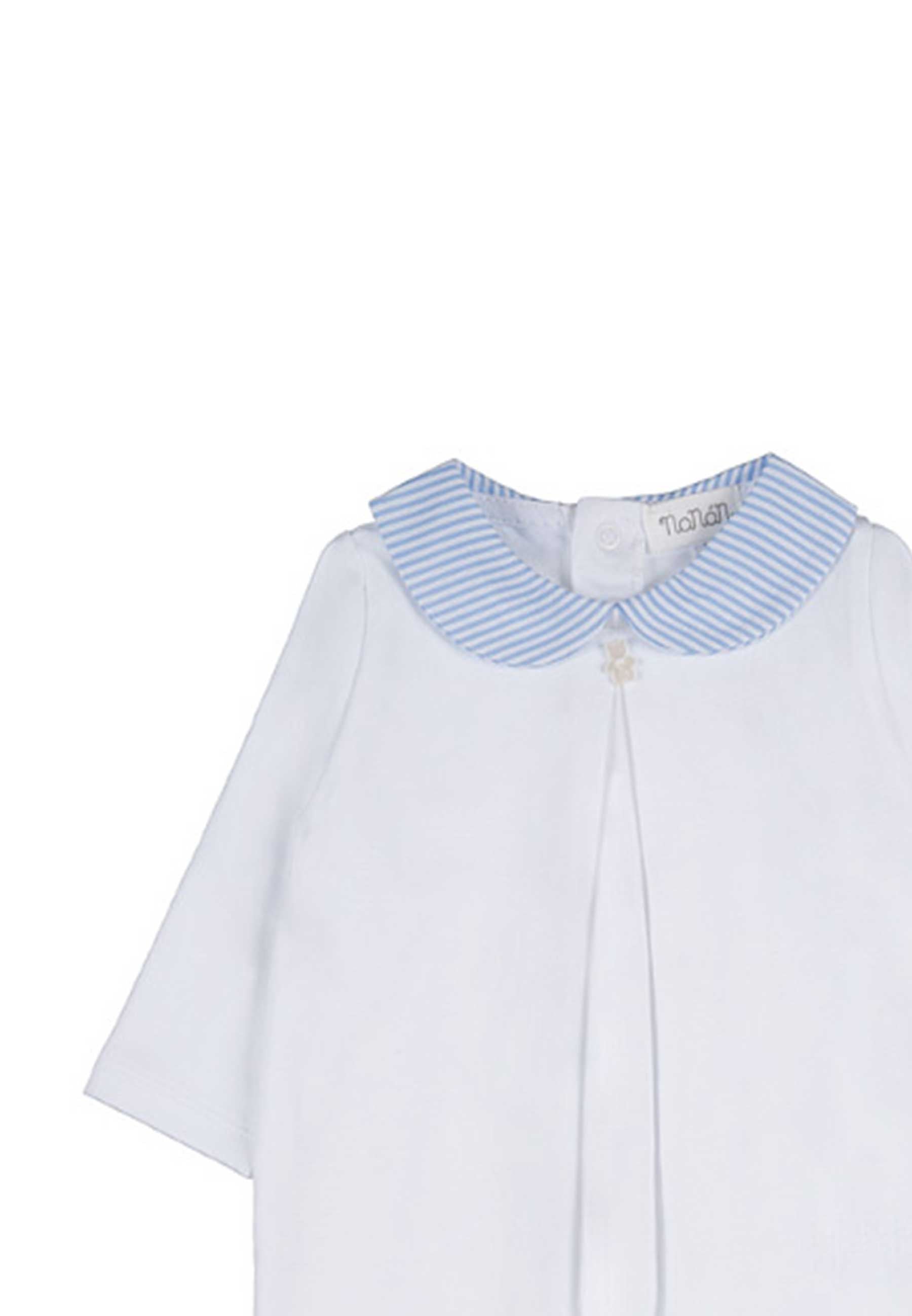 Tutina Nanan bianca in morbido jersey con colletto a righe dolce raffinata e perfetta per le giornate estive Il bottone a forma di orsetto aggiunge un tocco tenero ed elegante Bimbivip partner storico affidabile e autorevole nel panorama europeo ecommerce e retail ti garantisce qualità autenticità e marchi prestigiosi Acquista in totale sicurezza con prodotti 100 originali selezionati dai nostri specialisti per uno shopping sereno e di valore