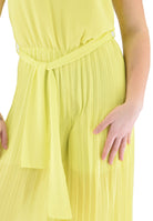 Abito raffinata e sofisticata realizzata in pregiato tessuto poly crepe una combinazione di leggerezza e fluidità che accarezza la silhouette con grazia. Il top superiore dal candido bianco puro emana eleganza e femminilità mentre il fiocco decorativo in tinta posizionato strategicamente in vita sottolinea con classe la figura donando un tocco di romanticismo e ricercatezza. Il pantalone plissé ampio e sinuoso crea un movimento dinamico e arioso valorizzando ogni passo con un’eleganza eterea. Il dettaglio della placchetta in metallo con il logo sotto il girovita aggiunge un accento esclusivo segno distintivo di un’eleganza senza tempo.Perfetta per occasioni speciali questa tuta si distingue per la sua versatilità e raffinatezza rendendo ogni look unico e impeccabile. Per preservarne intatta la bellezza è fondamentale seguire con attenzione le istruzioni di lavaggio: evitare il lavaggio a secco per non comprometterne la qualità non utilizzare l’asciugatrice per mantenere la morbidezza del tessuto e scegliere un detersivo delicato privo di candeggianti per evitare scolorimenti. La stiratura deve essere effettuata a una temperatura massima di 110°C senza l’uso del vapore che potrebbe causare danni irreversibili.Bimbivip storico punto di riferimento nell’e-commerce e negli store fisici in tutta Europa è il partner d’eccellenza dei più prestigiosi brand internazionali offrendo ai clienti un’esperienza di acquisto esclusiva e una garanzia di qualità superiore. Scegliere Bimbivip significa affidarsi a un universo di stile ricercatezza e affidabilità per una soddisfazione sempre al massimo livello. Seguire attentamente le istruzioni di lavaggio riportate sull'etichetta all'interno del capo. made in CINA composizione 100%PL