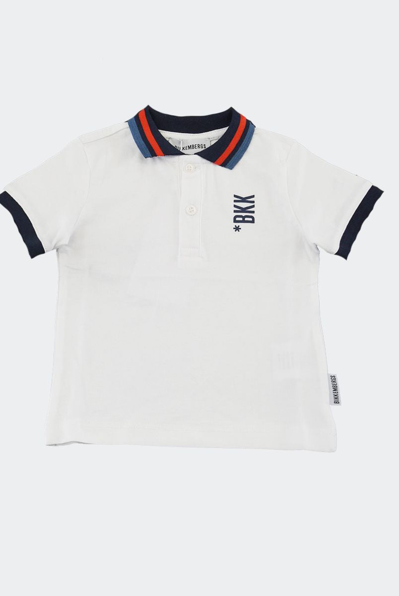 Polo tre Bottoni con collo Camicia. Manica corta con contrasto colore su bordo delle maniche. Logo lato cuore