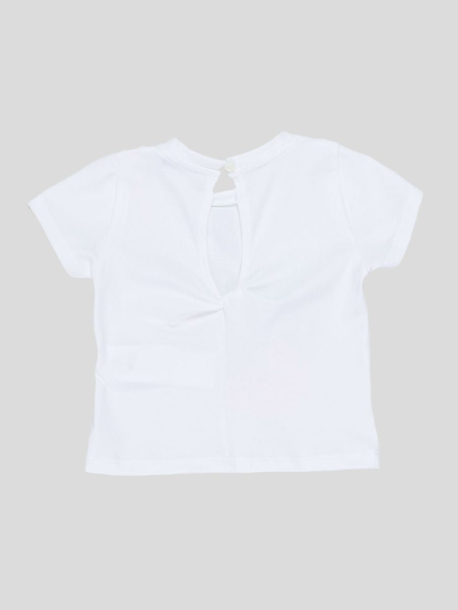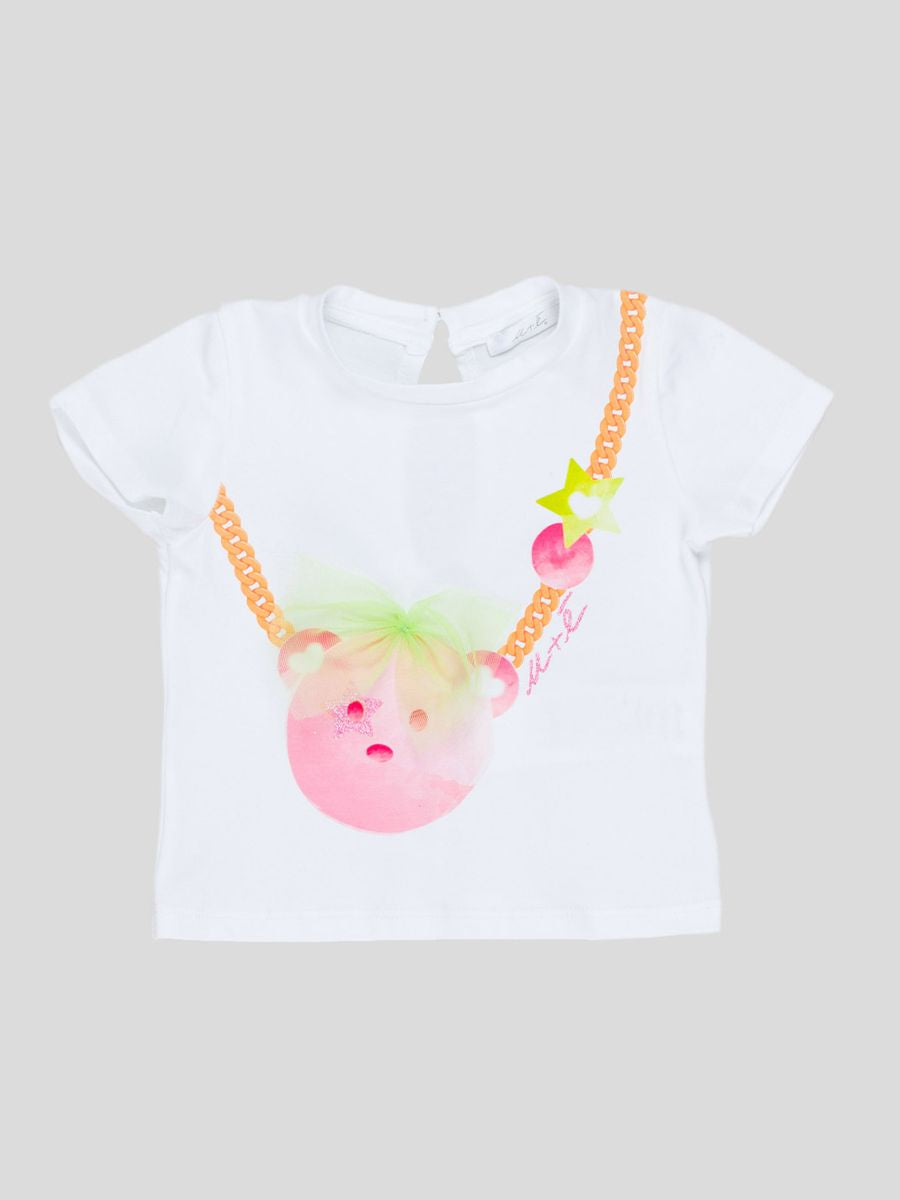 T-shirt girocollo manica corta tinta unita con Stampa frontale Orsetto. Bottone retrocollo a pressione