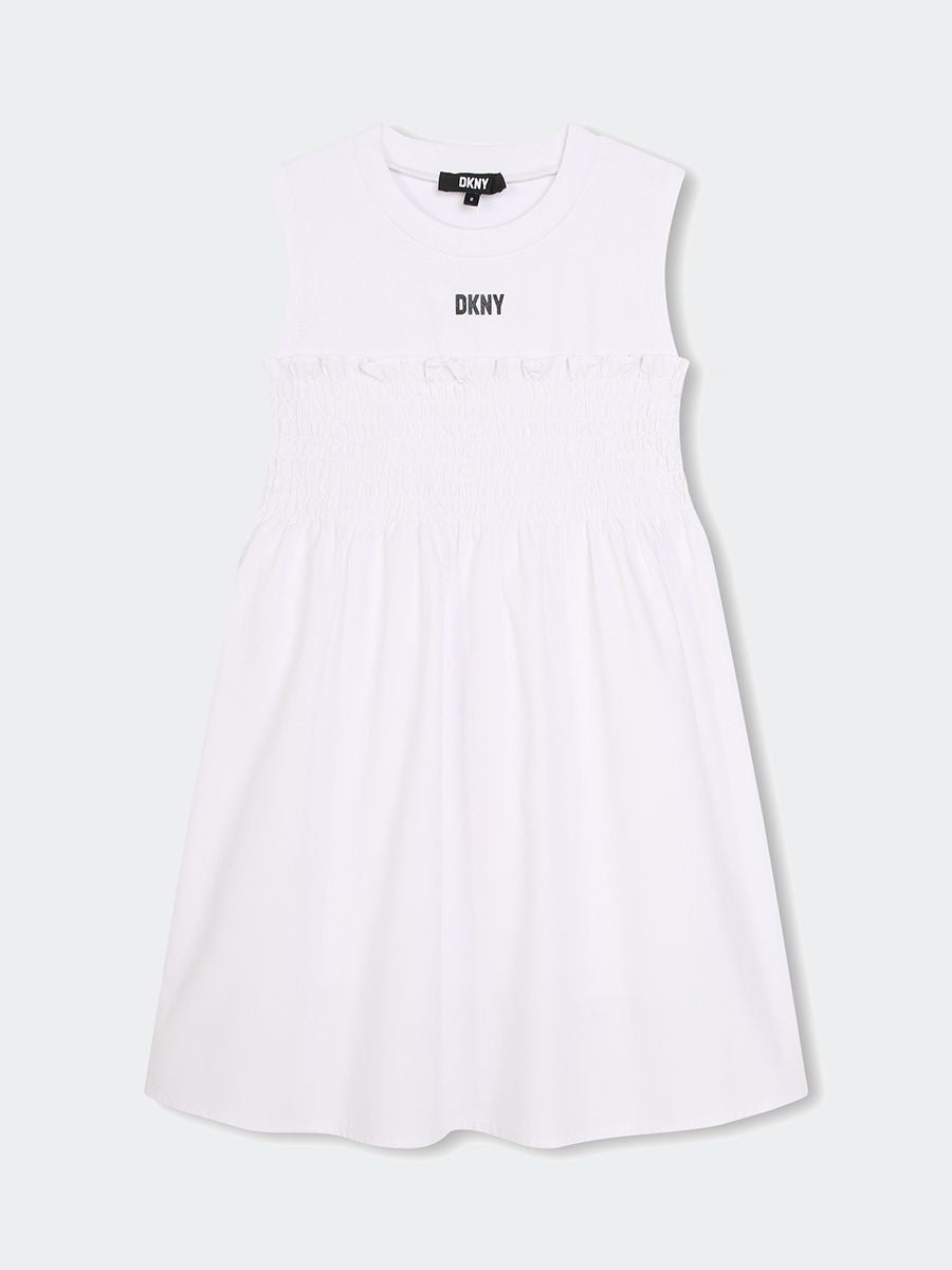 Abito Abito senza maniche a costina 1x1 e poplin di cotone in tinta. Rivestimento di viscosa 100%. Logo parte anteriore