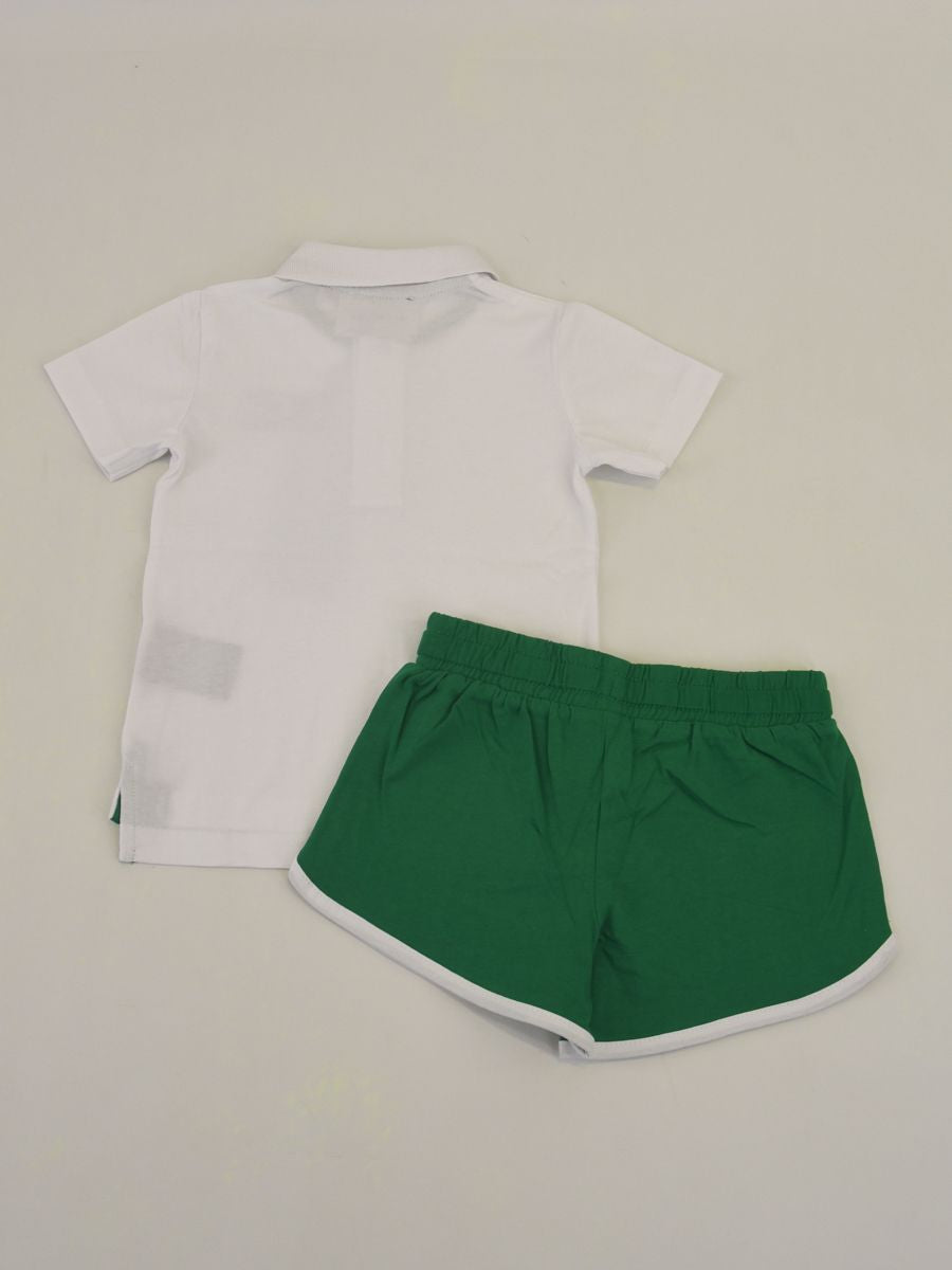 Completo Sportivo set Polo tre bottoni Manica corta con stampa Logo e pantaloncino con ricamo. Semplice e funzionale e soprattutto pratico per le giornate calde estive