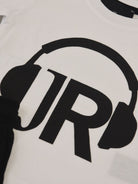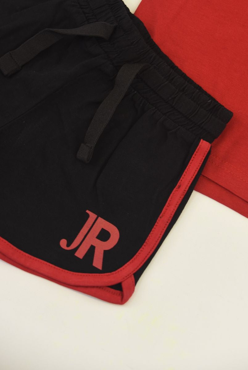 Completo Sportivo in morbido cotone il set comprende Girocollo manica corta con stampa Logo frontale iconico a tema Musicale abbinato con bermuda stampato con girovita elasticizzato e tasche laterali