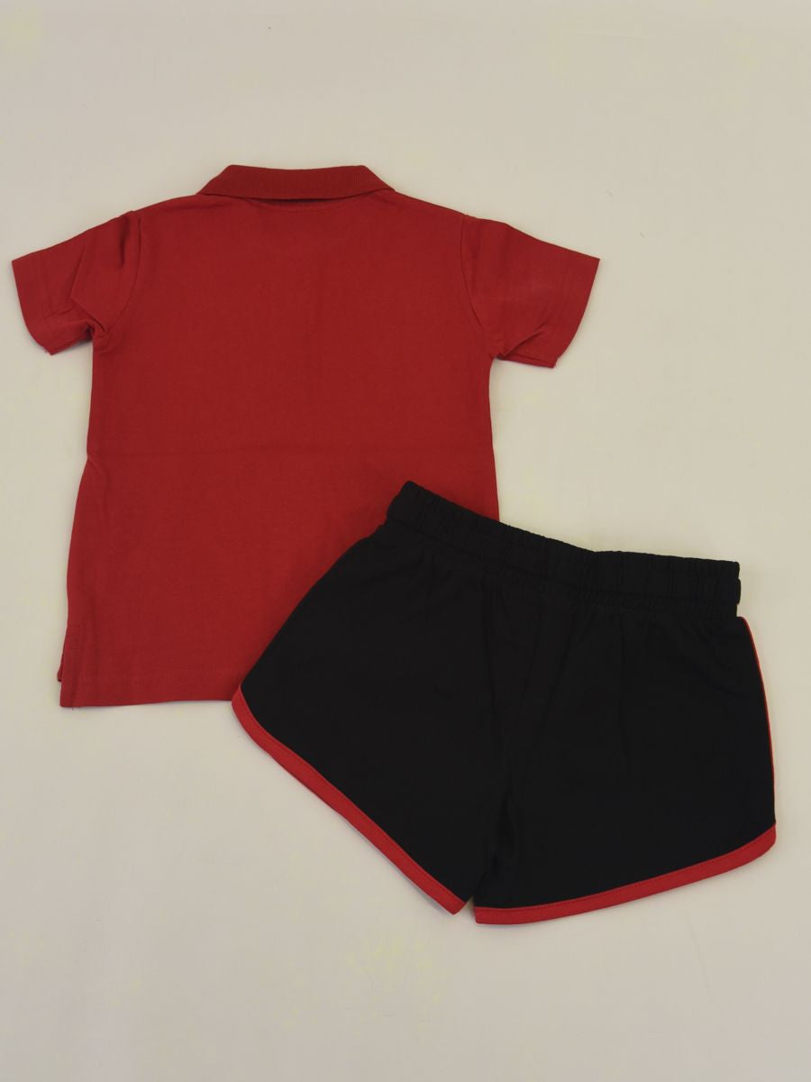 Completo Sportivo set Polo tre bottoni Manica corta con stampa Logo e pantaloncino con ricamo. Semplice e funzionale e soprattutto pratico per le giornate calde estive