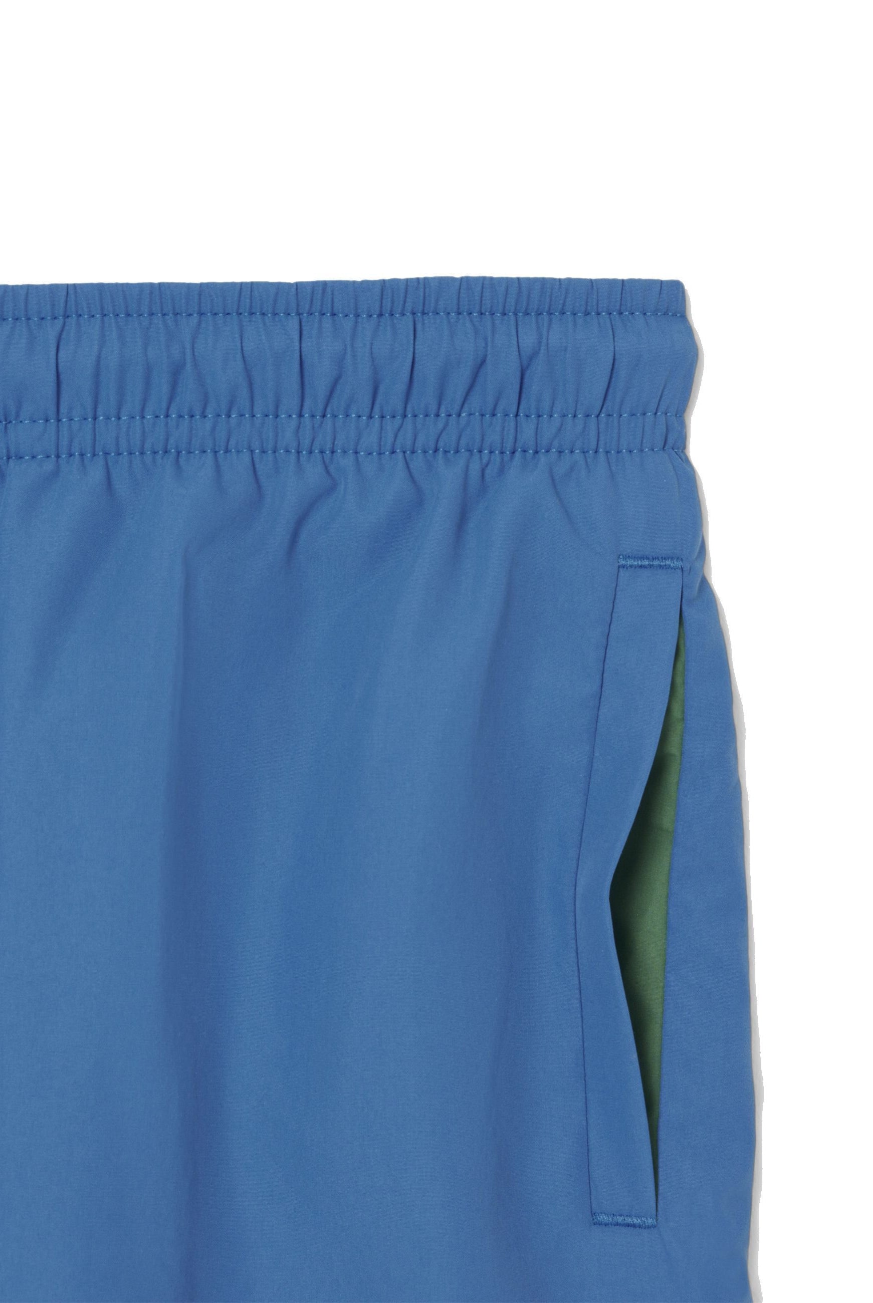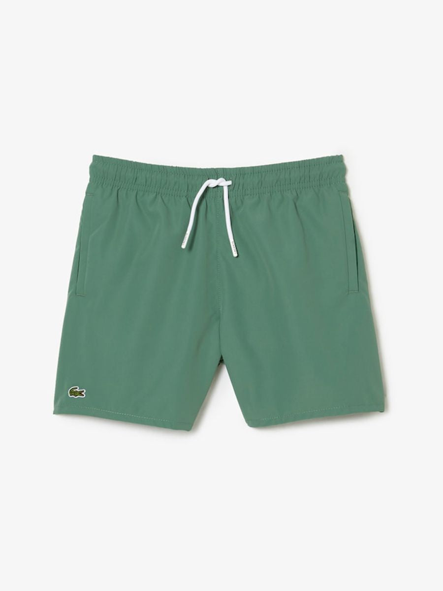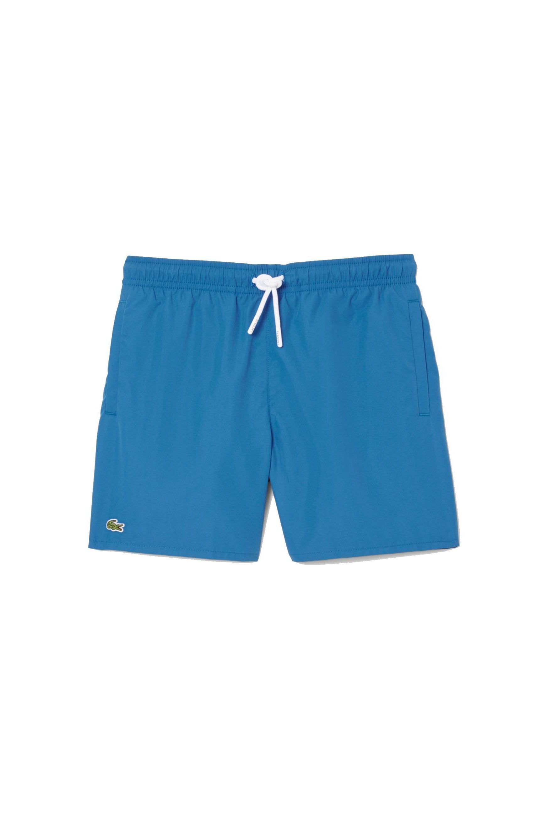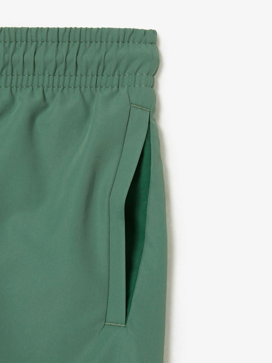 Costume modello Boxer con tasche a filo elastico sul girovita regolabile da cordino Logato. Patch Logo su fondo gamba