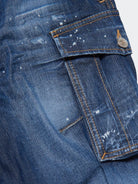 Jeans Cargo morbido con effetto vintage. Elastico in vita e sul fondo . Tasche lfrontali e posteriori. Effetto largo