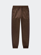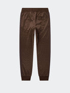 Pantalone in morbido tessuto All over con girovita elastico regolabile da cordino tasche laterali e posteriore con banda tinta unita e fondo a costine