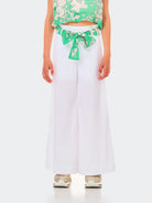 Pantalone vita alta a taglio largo di cotone tinta unita con passanti a vista