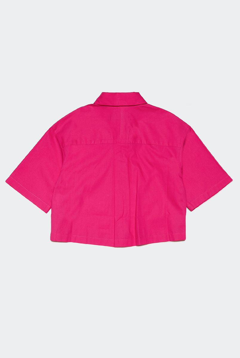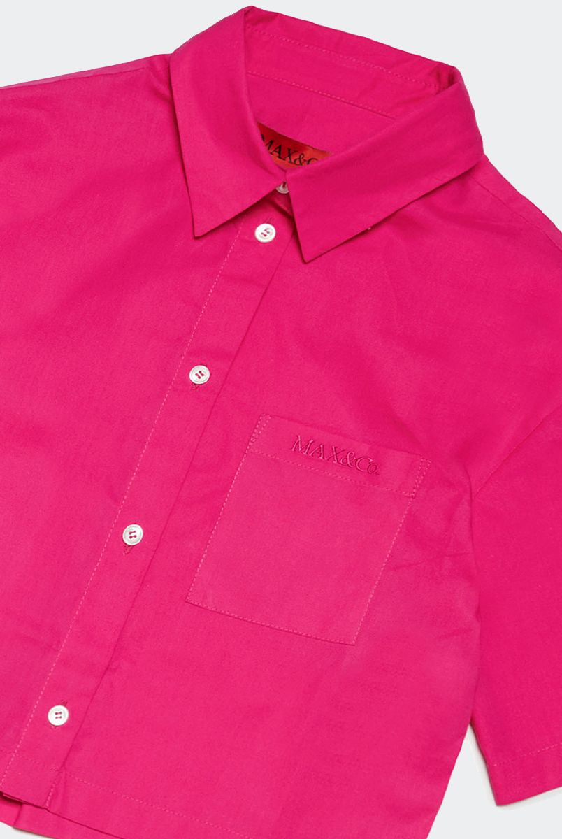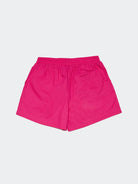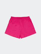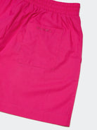 Shorts con ricamo caratterizzati da un vivace colore fuxia realizzati in morbido cotone. Presentano un logo ricamato sul retro per un tocco distintivo. La vita elasticizzata assicura una vestibilità comoda mentre le due tasche con inserti e la tasca posteriore sagomata offrono praticità. La lunghezza è sopra il ginocchio ideale per uno stile casual e confortevole