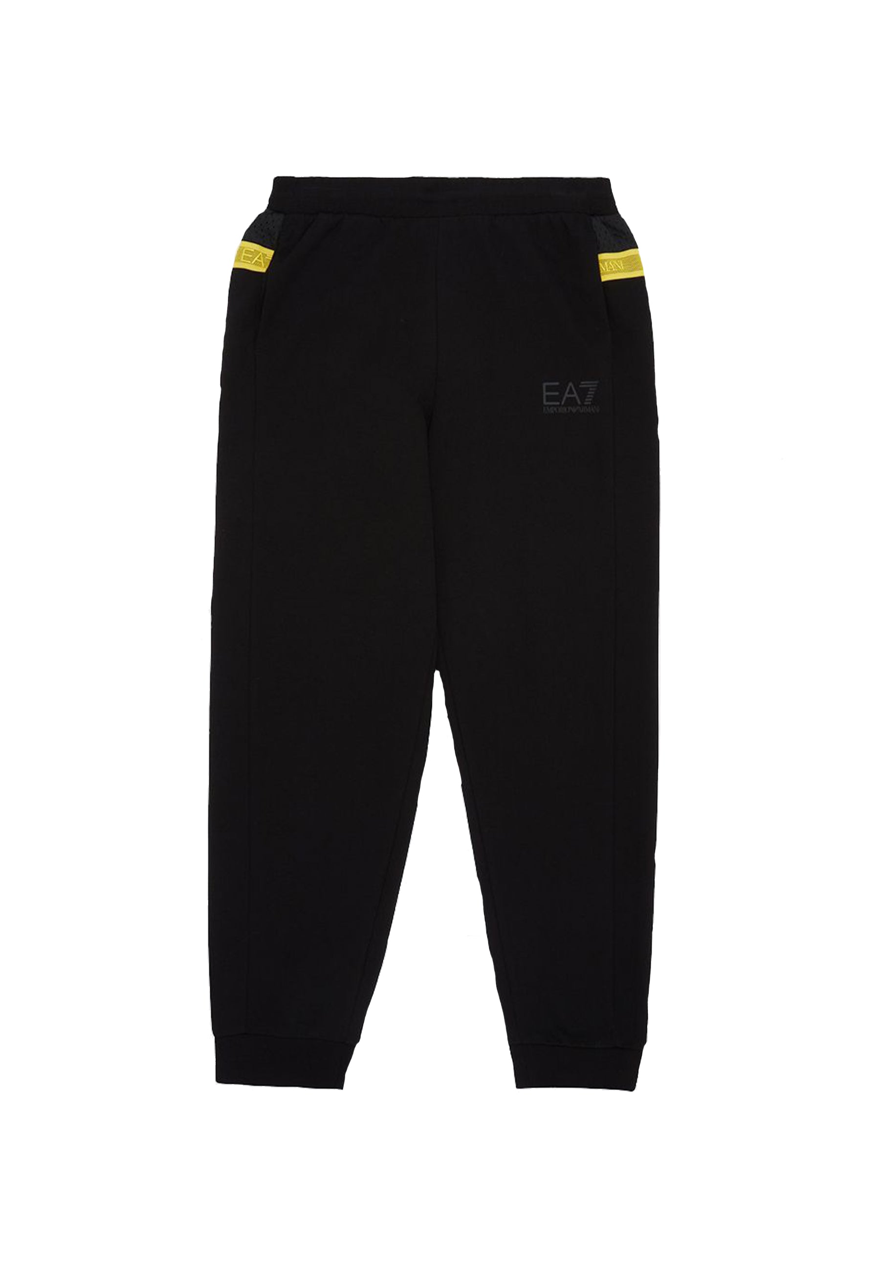 Sottotuta tinta unita con girovita elastico regolabile a lacci e polsini. Dotato di tasche laterali a taglio dritto aperte e dettaglio bande laterali in contrasto orizzontali. Logo applicato in rilievo tono su tono sulla gamba sinistra.