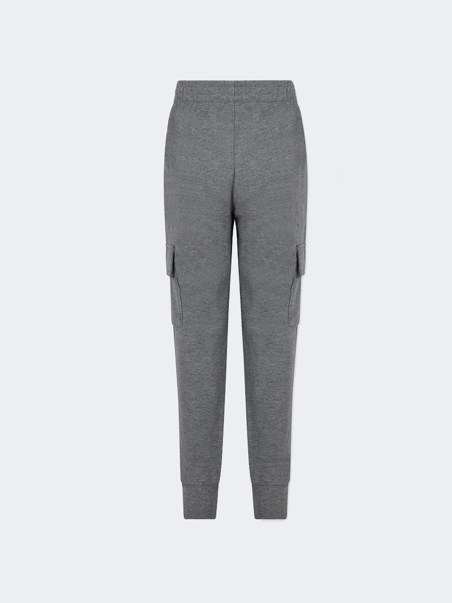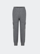 Sottotuta modello cargo in cotone garzato con doppia tascona laterale con strep. Coulisse in vita e elastici alle caviglie.