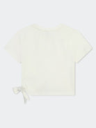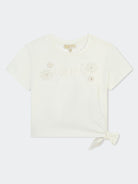 T-shirt T-shirt a manica corta in cotone 100% corta con un fiocco sul fondo logo "kors" ricamato con inserti e paillette in pizzo