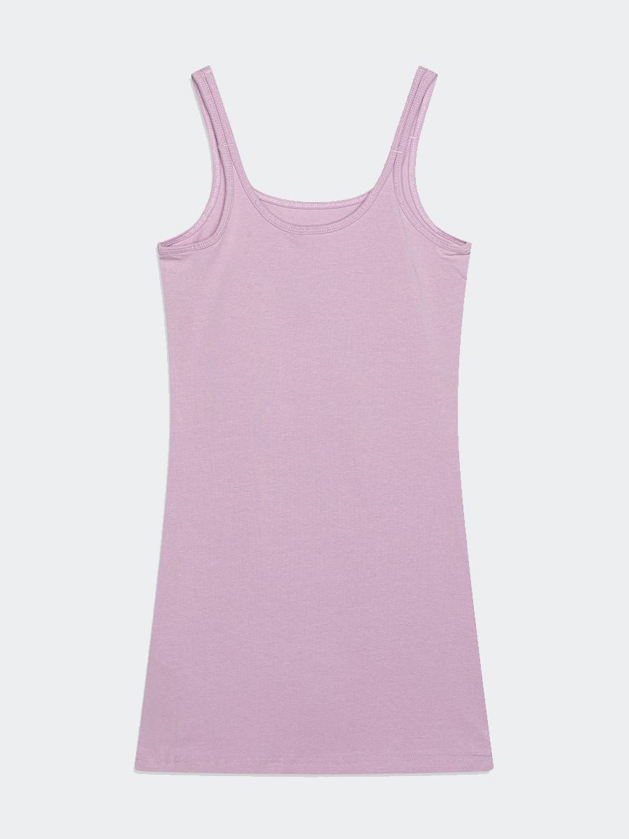 Abito a spallina stretta in cotone elasticizzato tinta unita con stampa Logo sul petto