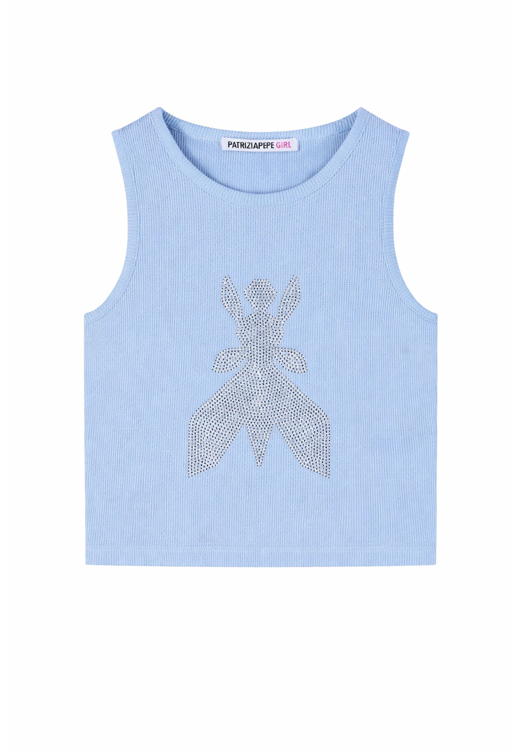 Patrizia pepe Top Azzurra con Logo Strass