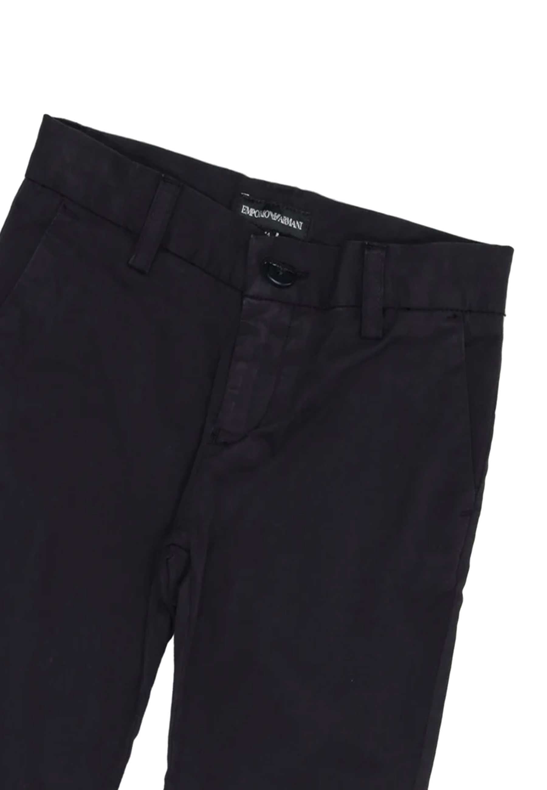 Pantalone chino in cotone stretch appartenenti alla linea Essential esprimono un’eleganza sobria e versatile ideale per vestire i più piccoli con classe in ogni stagione. Il design essenziale e le tonalità neutre li rendono un capo senza tempo perfettamente integrabile in qualsiasi guardaroba. Realizzati con un tessuto pregiato composto al 97% da cotone e al 3% da elastan offrono una vestibilità impeccabile e un comfort straordinario mentre la fodera in poliestere e cotone assicura resistenza e morbidezza. Dettagli raffinati come la vita con passanti le tasche laterali e posteriori a filetto insieme alla placchetta con il logo EA conferiscono un tocco distintivo di esclusività e ricercatezza.Per garantire la durata e la bellezza di questi capi nel tempo è fondamentale seguire con attenzione le indicazioni per la cura del prodotto. Ogni articolo presenta dettagliate istruzioni sia online che sulle etichette per un trattamento ottimale: evitare il lavaggio a secco non utilizzare l’asciugatrice e non candeggiare i tessuti preferendo detersivi specifici per colori che non contengano agenti sbiancanti. Inoltre la stiratura deve essere effettuata a una temperatura massima di 110°C evitando il vapore che potrebbe causare danni irreversibili.Questo capo esclusivo è disponibile presso Bimbivip rinomato store online ed e-commerce di prestigio punto di riferimento per chi desidera vestire i propri bambini con capi di alta qualità. Grazie alla sua consolidata esperienza nel settore e alla collaborazione con i più grandi brand della moda Bimbivip garantisce ai suoi clienti un’esperienza d’acquisto impeccabile all’insegna dell’eccellenza e della massima soddisfazione.Emporio Armani rappresenta un’icona intramontabile di stile ed eleganza un marchio che incarna l’equilibrio perfetto tra raffinatezza e modernità.