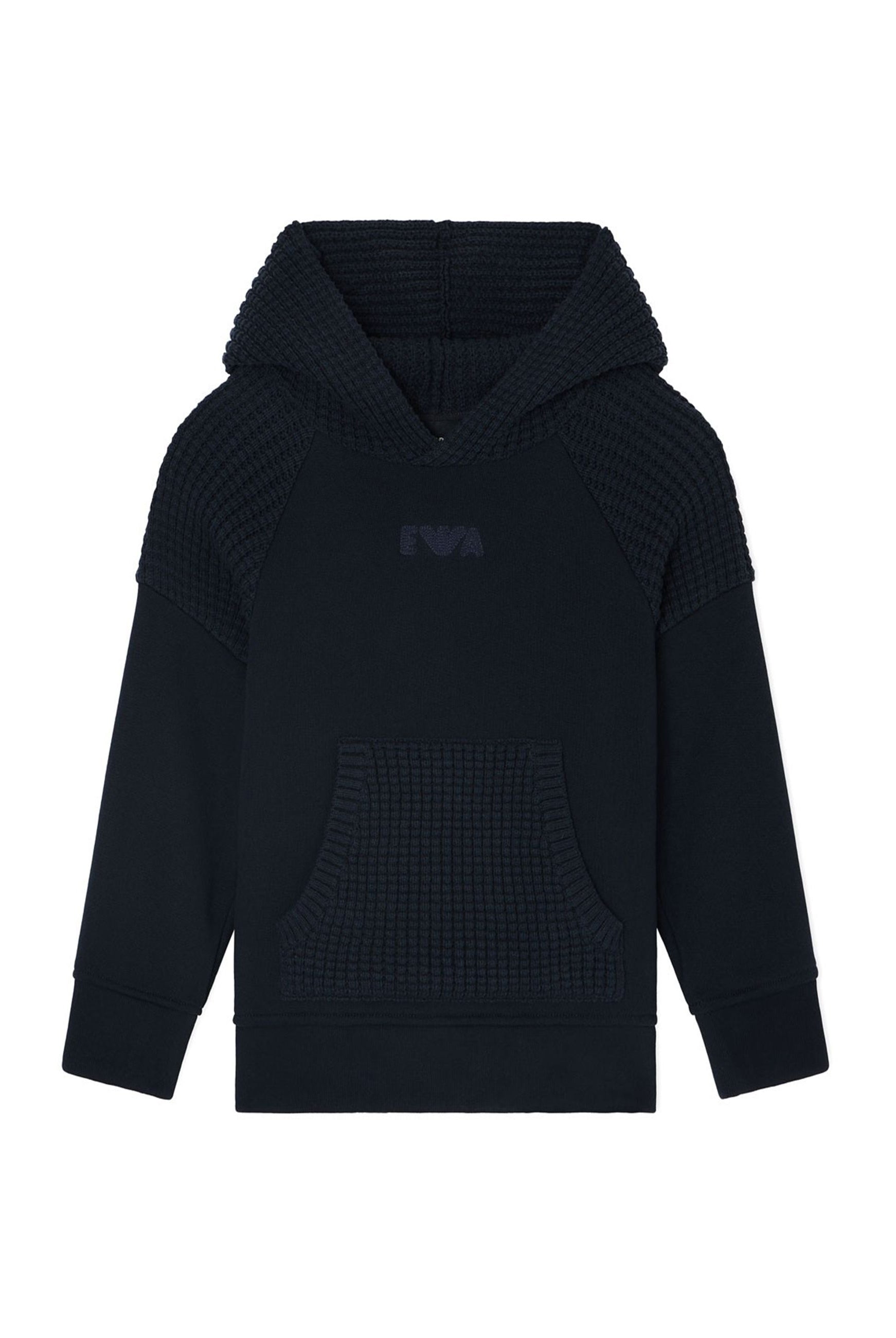Armani Felpa Girocollo Logo Piccolo Tinta Unita Blu