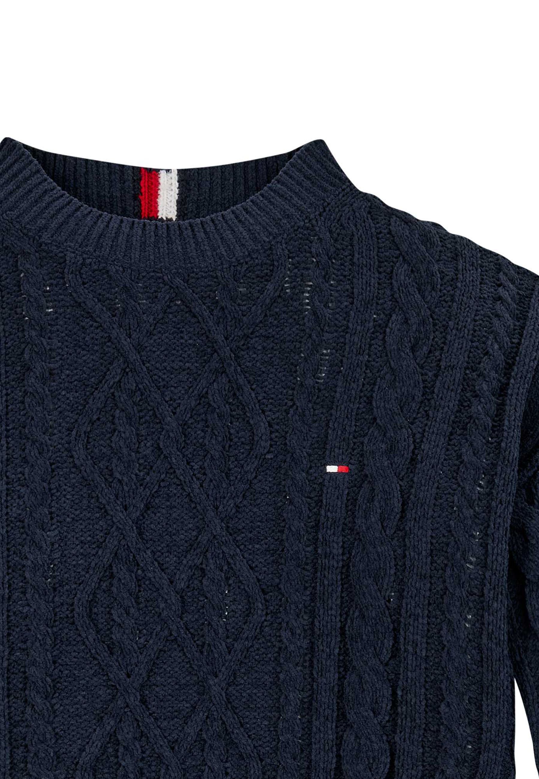 Maglia per bambini e ragazzi firmato Tommy Hilfiger disponibile sull'e-commerce di Bimbivip è un esempio dell'eccellenza dei marchi prestigiosi offerti ai clienti in tutta Europa grazie alla storicità e affidabilità di Bimbivip partner esclusivo dei brand più rinomati che garantisce prodotti di alta qualità e soddisfazione Il maglione ha un design con scollo arrotondato ed è realizzato in maglia spessa parzialmente in poliestere riciclato per un approccio sostenibile con vestibilità dritta maniche lunghe e girocollo classico Polsini e orlo sono rifiniti con un pratico cordino elastico per offrire comfort aggiuntivo mentre la maglia a coste e il logo ricamato sul davanti esaltano lo stile distintivo La composizione è 100% poliestere riciclato e Bimbivip con la sua rete di store fisici e online offre accesso semplice e sicuro a capi di qualità garantendo la massima soddisfazione