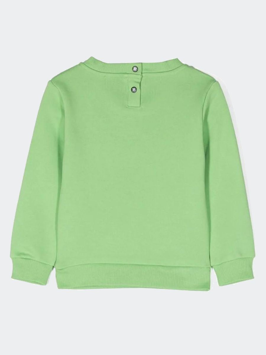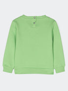Felpa girocollo manica lunga. Costina su collo polsi e fondo con applicazione di etichetta Logo in tessuto. stampa sul petto e chiusura posteriori a bottoni a pressioni