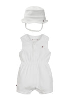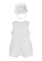 Set Regalo composto da tutina smanicata con mini ricamo logo sul cuore e cappellino alla pescatora.