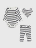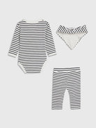 Set Regalo completo è composto da body joggers e bavaglino in tessuto stretch a coste. Scollatura rotonda. Chiusura con bottoni automatici in fondo e sul collo