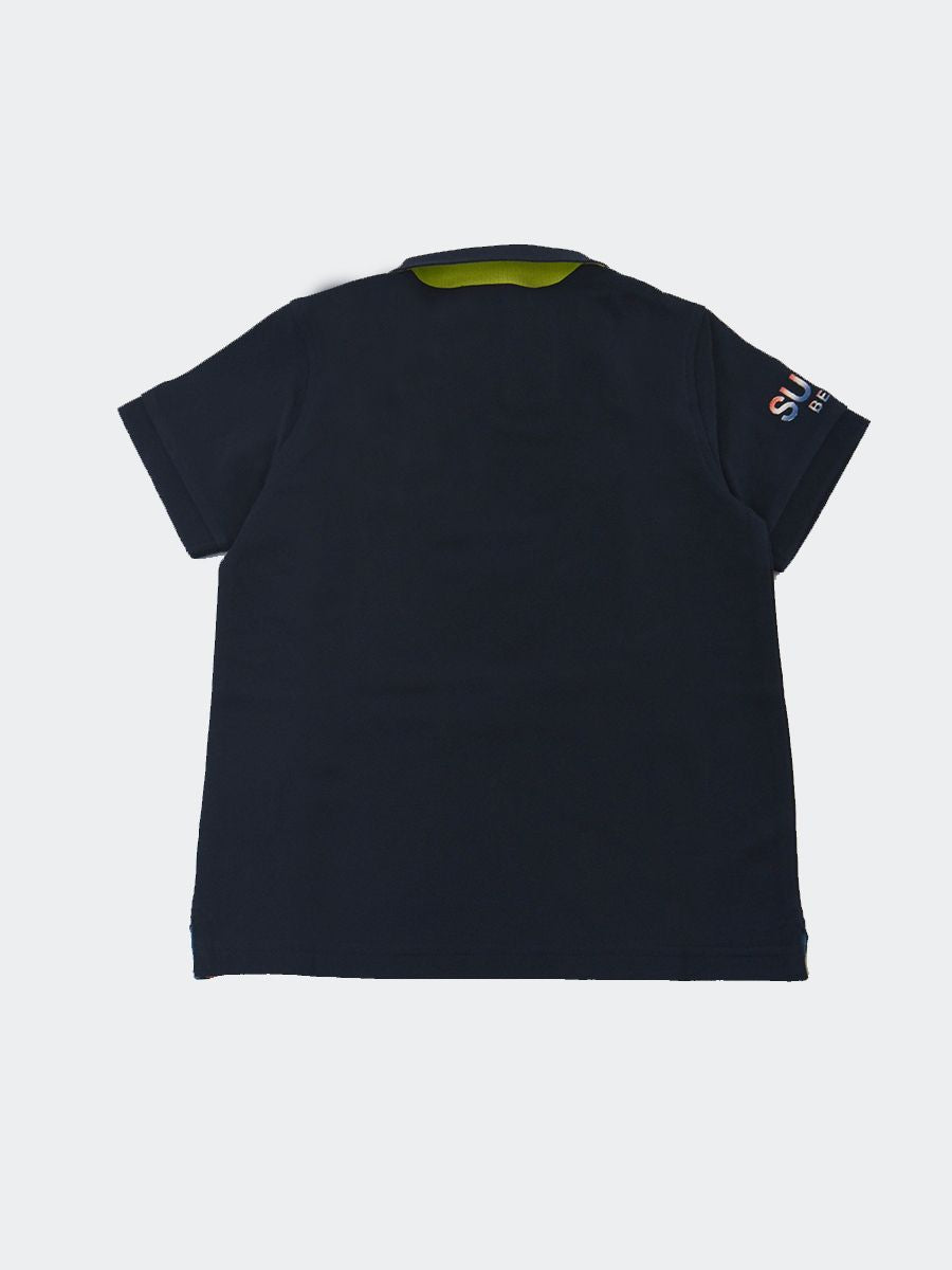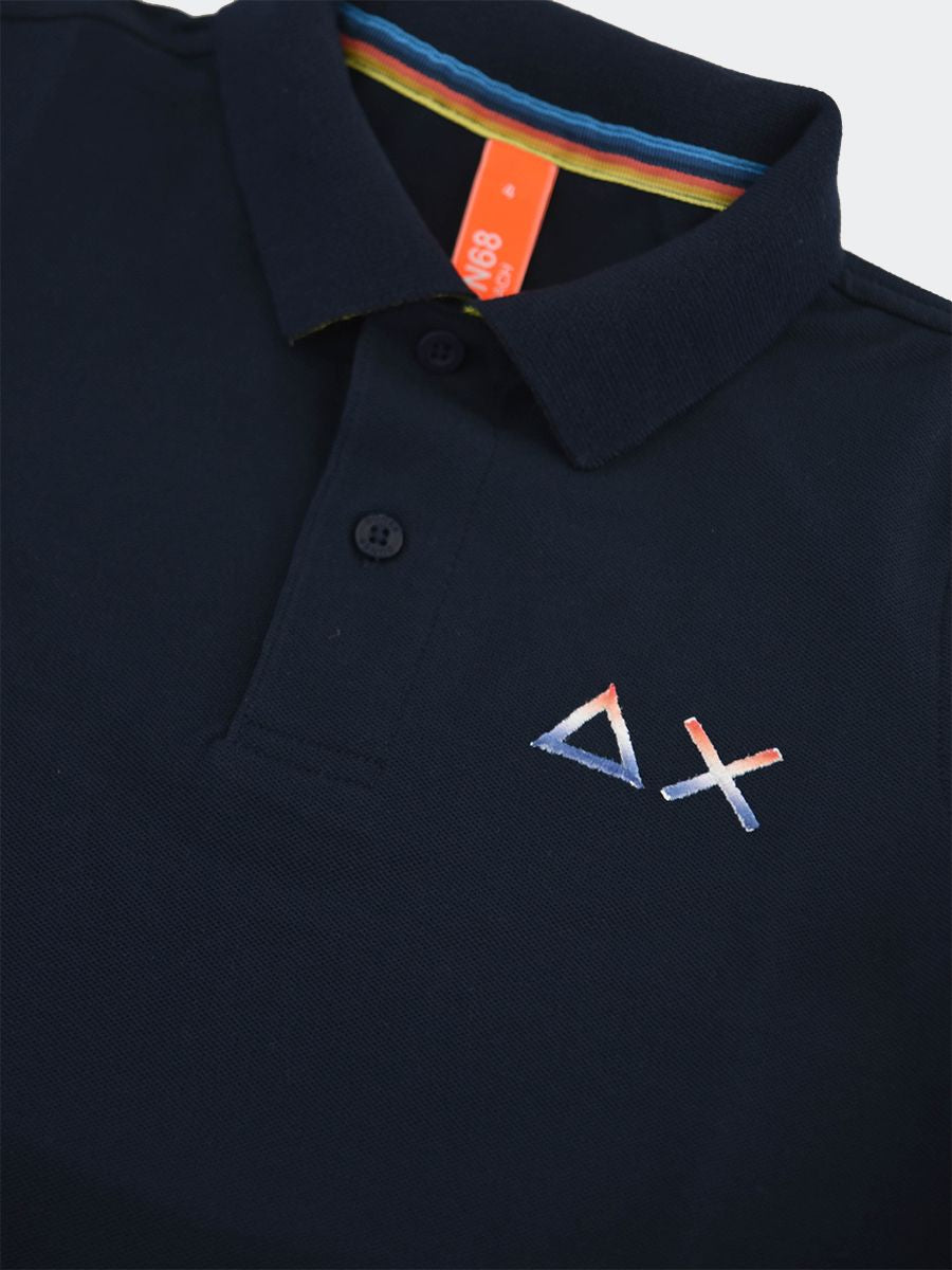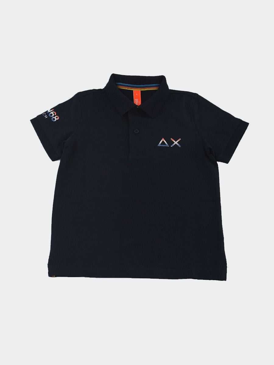 Polo estiva da Ragazzo Polo Sun68 con logo a contrasto colore. Le maniche corte e il collo polo classico la rendono un capo versatile e alla moda. Il colore unito al ricamo del logo sul petto e sulla manica destra conferisce un tocco di eleganza e originalità. La vestibilità slim assicura una silhouette impeccabile. il tessuto piquet di cotone e il sottocollo a contrasto colore sono identificativi del Brand