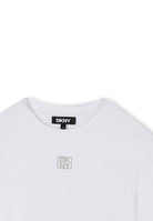 T-shirt T-shirt a maniche corte in jersey 95% viscosa e 6% elastan. Ricamo DKNY color argento sul davanti.