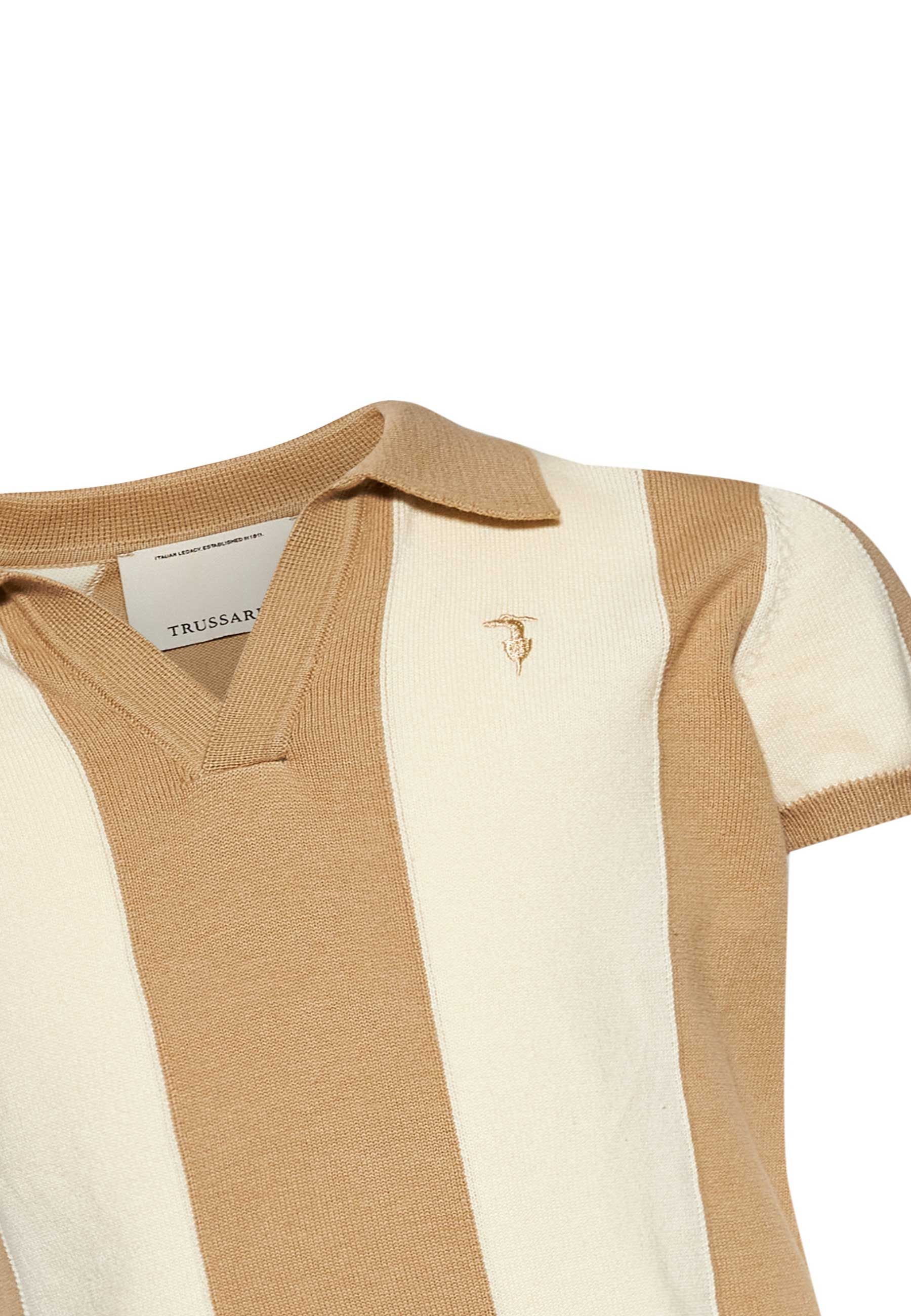 Trussardi Polo Fantasia Per Bambino Junior Beige con Design A Righe