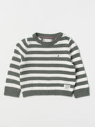 Maglia girocollo a fantasia righe orizzontali.Logo ricamato lato cuore. Chiusura con bottoni sulla spalla. Girocollo polsi e fondo a coste