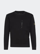 Felpa tinta unita a girocollo e manica lunga. Tasca particolare frontale sul lato cuore a zip e Logo applicato sulla manica.  Polsini e orlo a costine