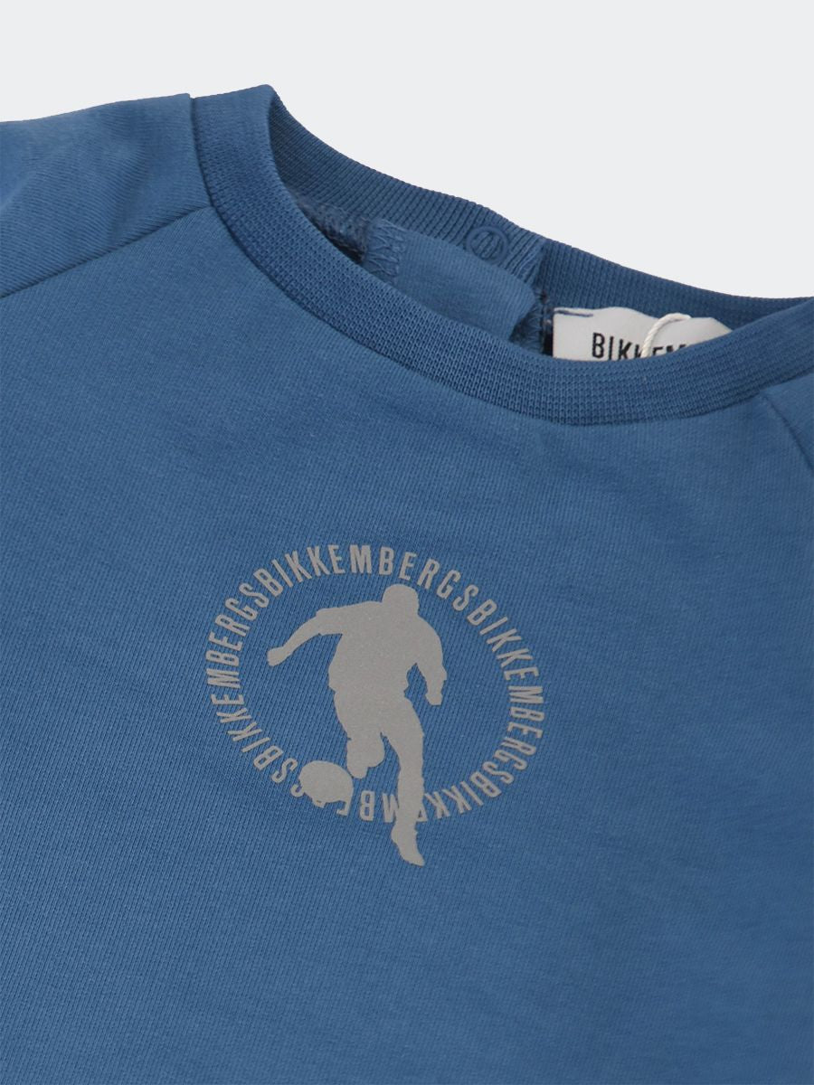 Tuta composto da felpa girocollo con Stampa Logo e bottone su spalla. Pantalone jogging tinta unita con regolazione a cordino