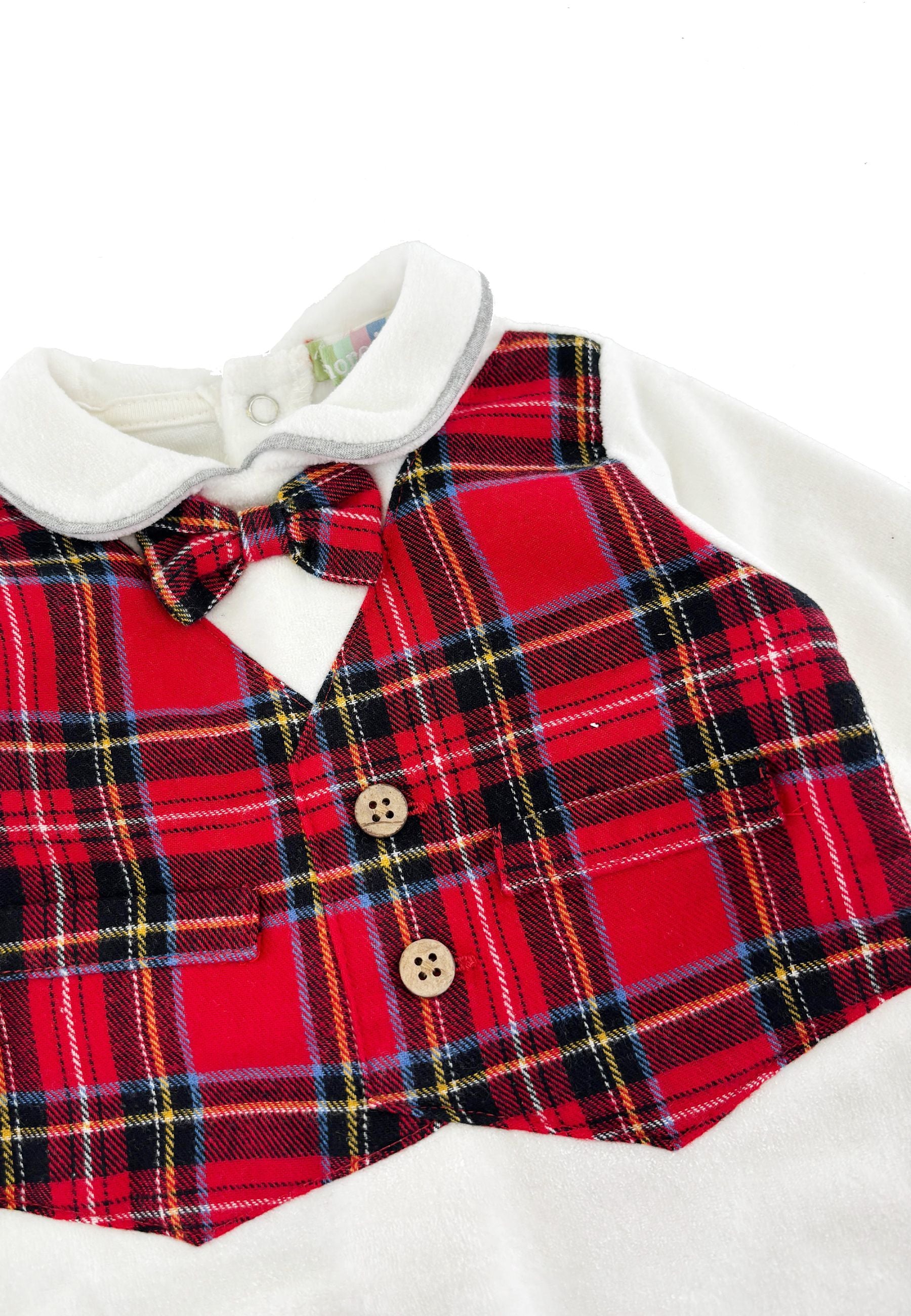 Tutina elegante senza tempo di Amore is me realizzata in morbida ciniglia con colletto e papillon in raffinato check rosso Un capo esclusivo e curato in ogni dettaglio distribuito da Bimbivip partner storico affidabile e riconosciuto nel panorama europeo dell’e-commerce e retail da anni punto di riferimento per le famiglie che cercano qualità originalità e garanzia di marchi prestigiosi per un’esperienza d’acquisto sicura soddisfacente e appagante