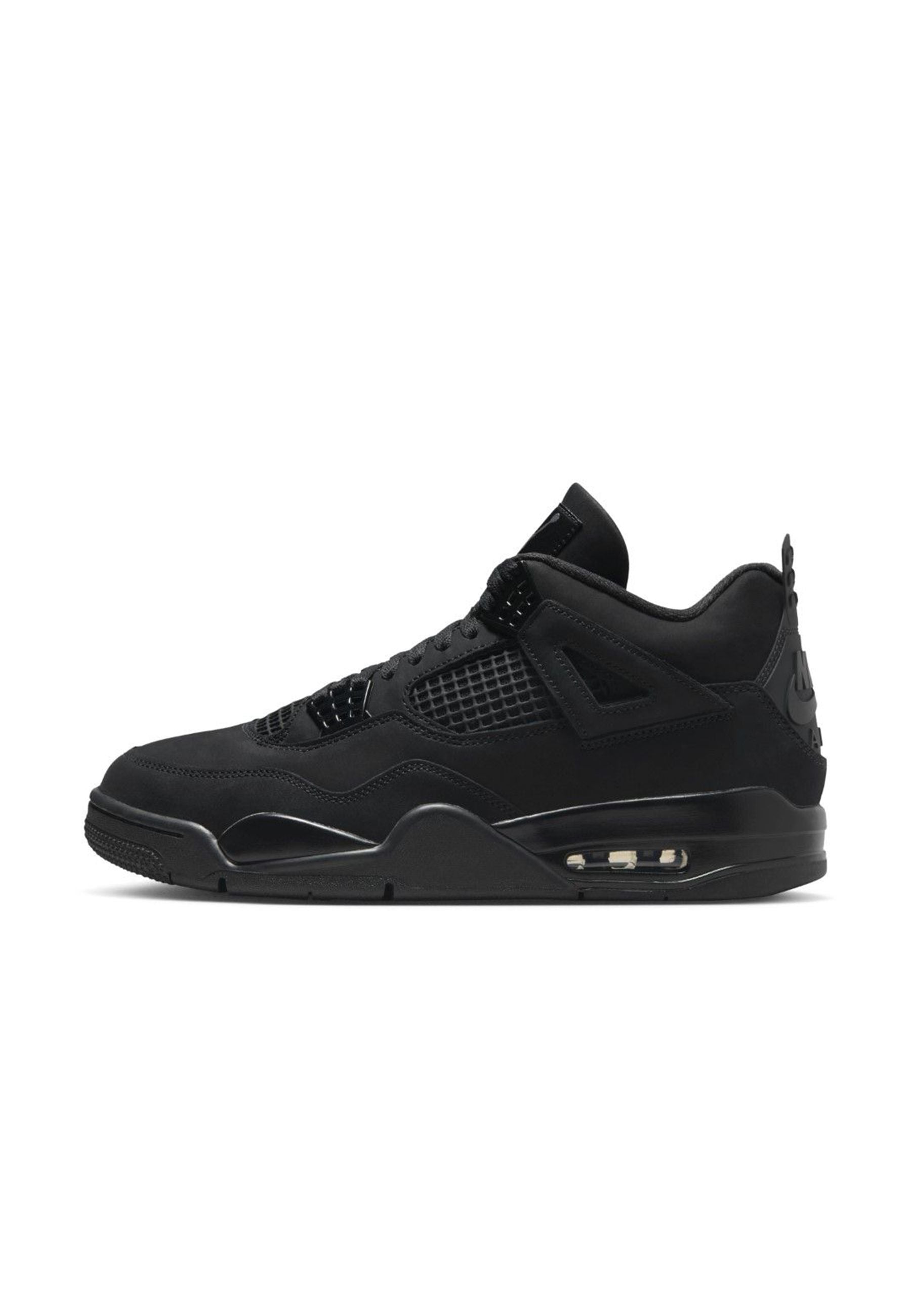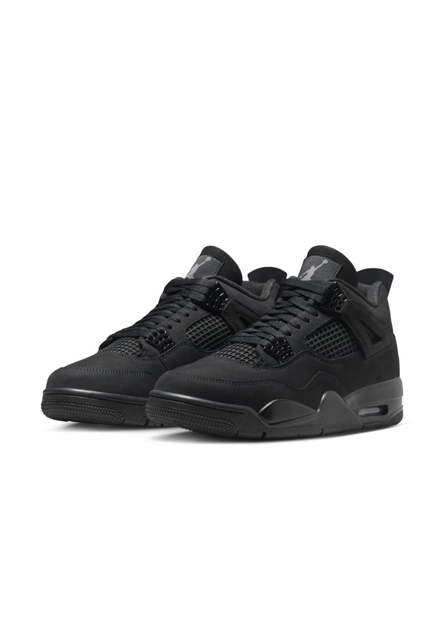 Sneakers Air Jordan 4 Black Cat 2025 silhouette leggendaria total black sinonimo di potenza eleganza e stile senza tempo Tomaia in morbida pelle scamosciata nera inserti in rete tono su tono linee pulite e raffinate Midsole e suola coordinate per un look deciso sofisticato Logo Nike Air sul tallone omaggio all’heritage Jordan Retro fedele all’originale con materiali migliorati comfort e durata superiore Sneakers imprescindibile per collezionisti e appassionati Streetwear un design pulito potente intramontabile Distribuite da Bimbivip partner storico affidabile punto di riferimento europeo per famiglie qualità originalità e marchi prestigiosi esperienza d’acquisto sicura soddisfacente e appagante