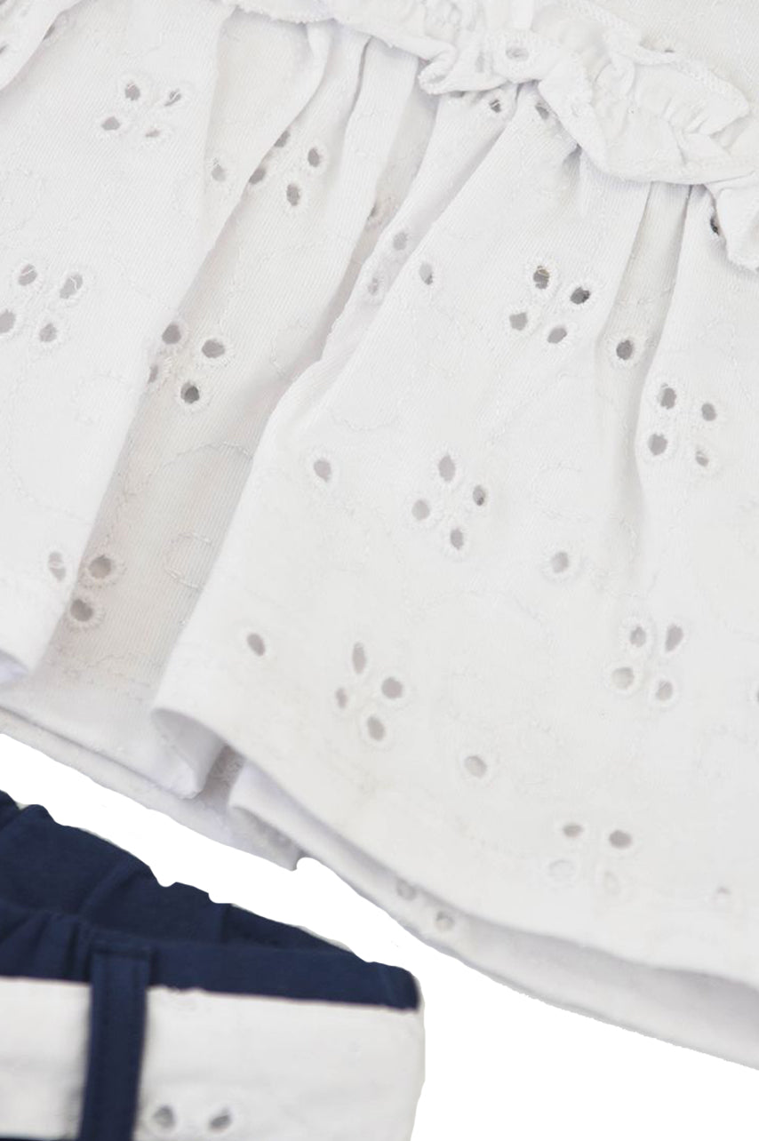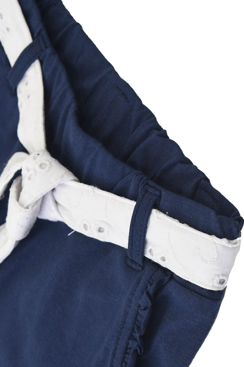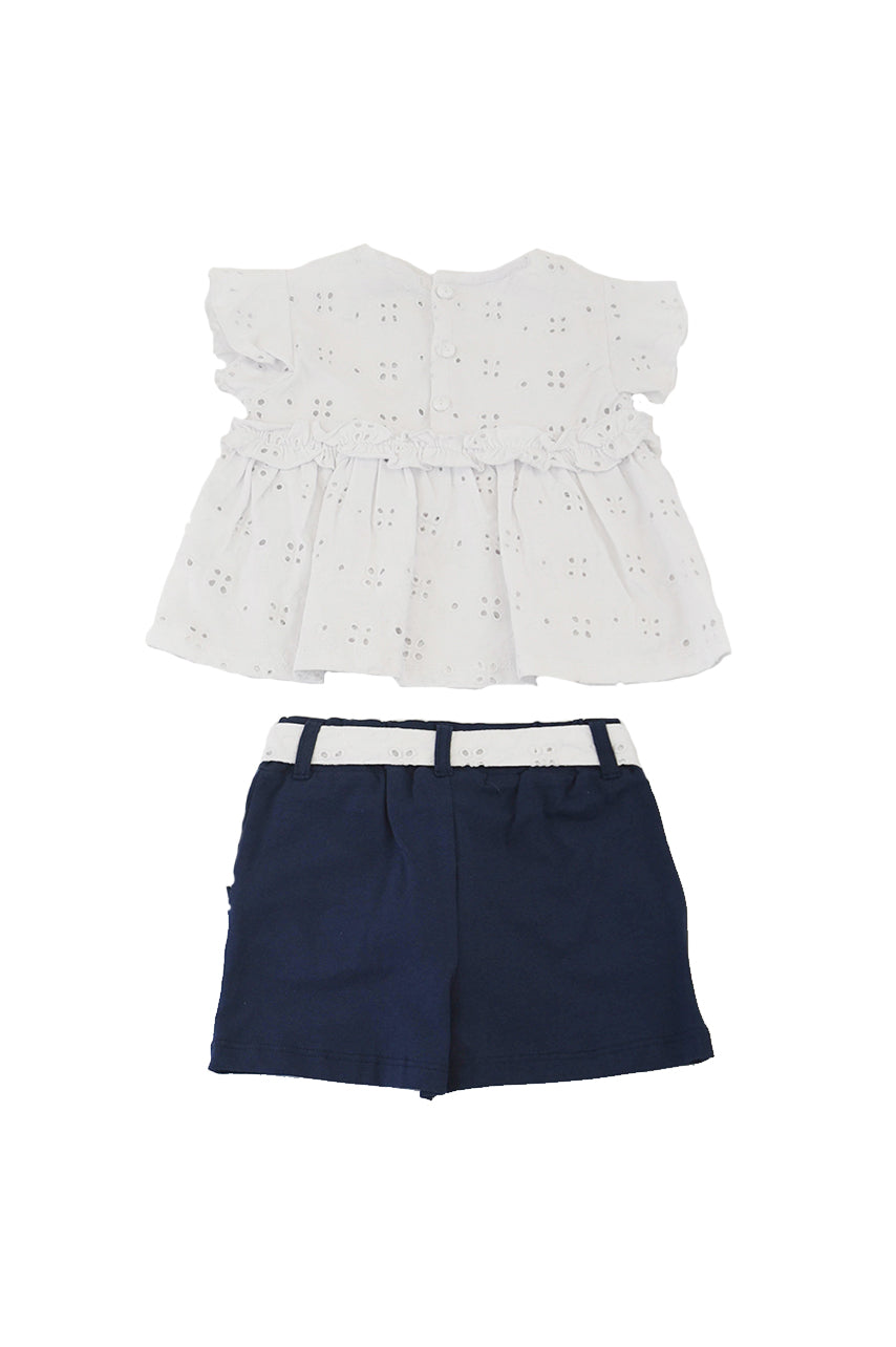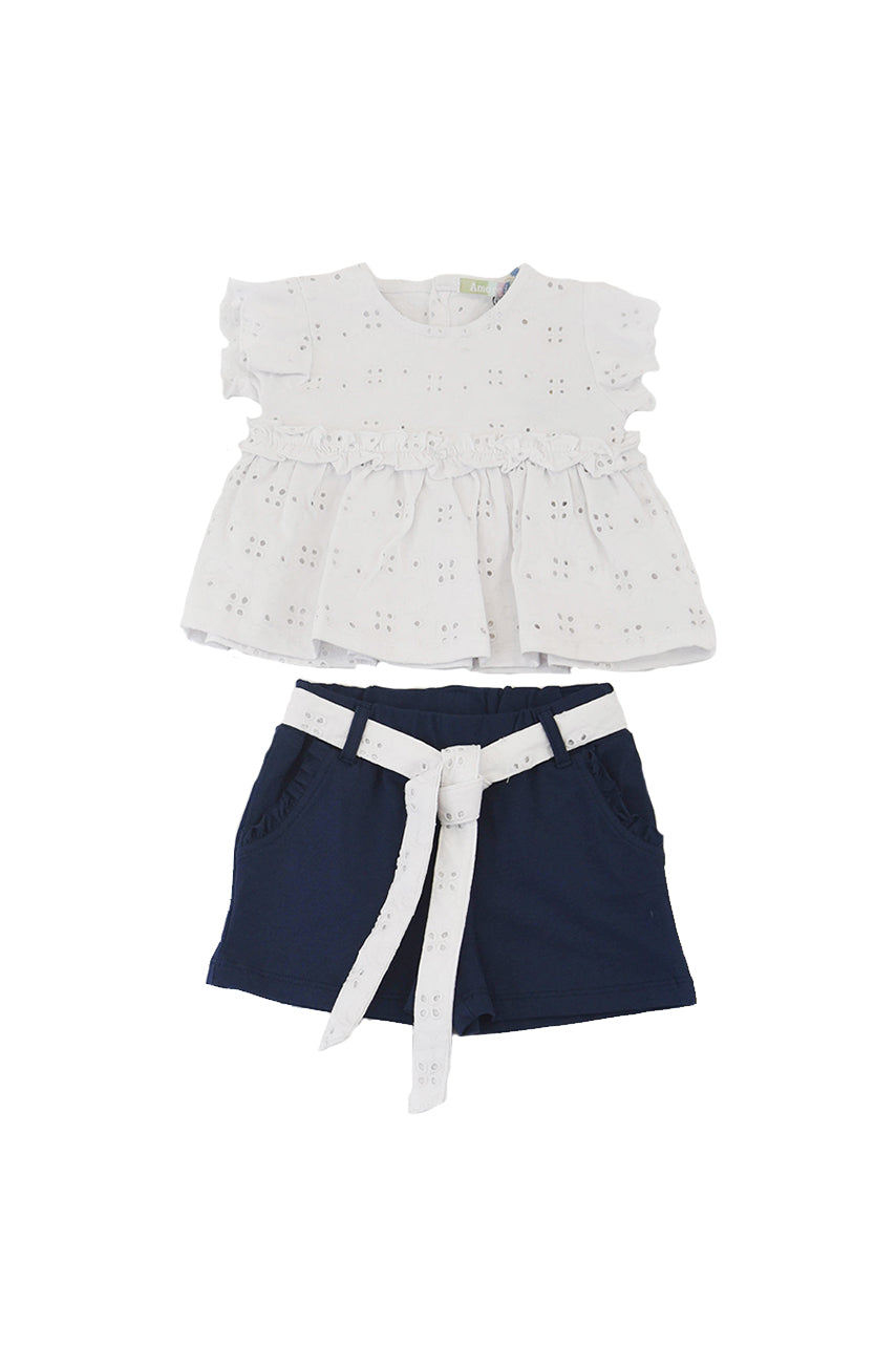 Einfarbiges, kurzärmliges Set mit Rundhalsausschnitt, Voila und Short mit kontrastierendem, verziertem Schleifengürtel
