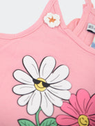Einfarbiges Tanktop mit schmalen Trägern und Blumendruck auf der Vorderseite