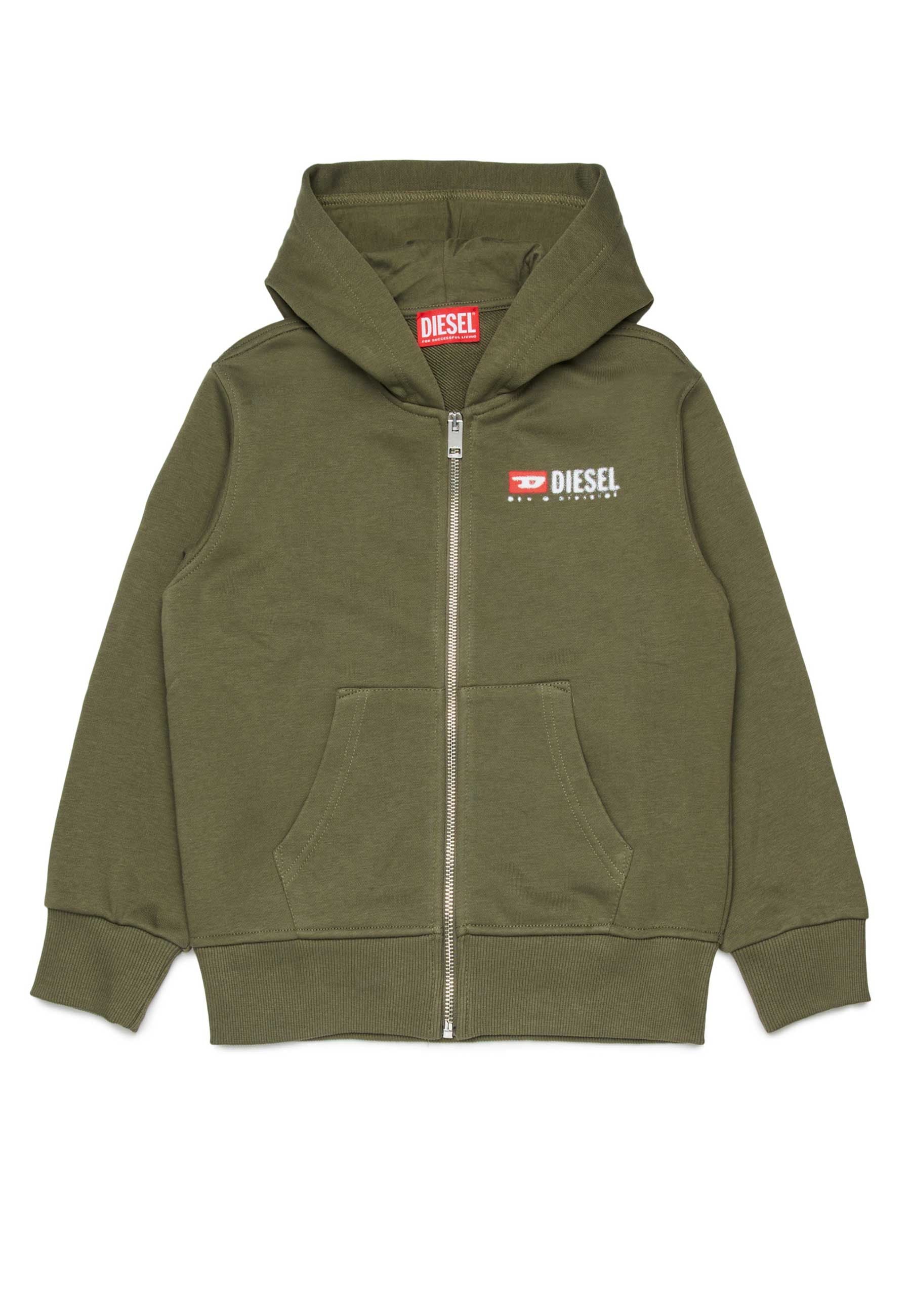 Felpa bambino bambina in morbido cotone di alta qualità dal comfort avvolgente e dalla mano piacevole sulla pelle design moderno essenziale e versatile vestibilità dritta equilibrata che assicura libertà di movimento chiusura con zip pratica resistente e scorrevole cappuccio funzionale protettivo e avvolgente polsini e orlo con cordino elastico confortevole e stabile tasche a scivolo comode capienti e discrete maniche lunghe ideali per ogni stagione logo Diesel frontale iconico riconoscibile e di forte personalità capo originale curato nei dettagli pensato per bambini dinamici attenti allo stile e alla qualità Prodotto esclusivo distribuito da Bimbivip realtà storica affidabile e autorevole punto di riferimento europeo per le famiglie che cercano sicurezza autenticità e selezione accurata di marchi prestigiosi garanzia di un acquisto sereno protetto e pienamente soddisfacente