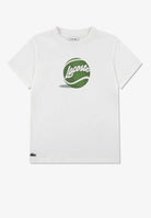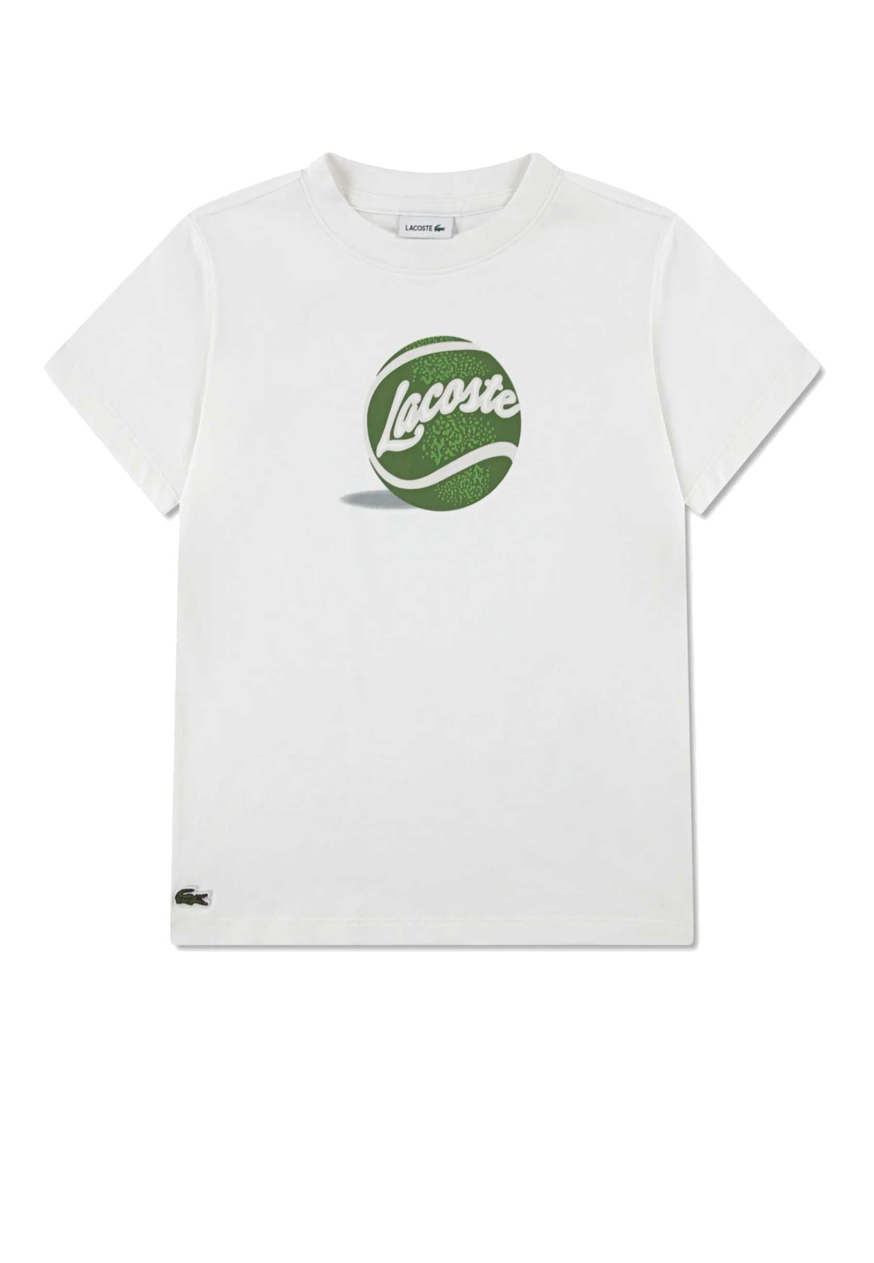T-shirt disponibile in esclusiva da Bimbivip partner storico affidabile e autorevole nel panorama europeo ecommerce e retail punto di riferimento per le famiglie che cercano qualità autenticità e marchi prestigiosi Bimbivip garantisce esperienza di acquisto sicura trasparente e gratificante con attenzione al cliente cura nella selezione e garanzia di originalità per uno shopping sereno e di valore La t-shirt girocollo bianca da bambino Lacoste Kids unisce stile sportivo e design raffinato con mezza manica e girocollo a coste elasticizzate realizzata in morbido jersey di cotone 100% presenta un’originale stampa grafica con pallina da tennis verde e logo in corsivo perfetta per look casual o attivi Vestibilità regolare qualità superiore e garanzia di autenticità al 100% selezionata dai nostri specialisti per famiglie che scelgono solo prodotti genuini e sicuri Seguire attentamente le istruzioni di lavaggio riportate sull'etichetta all'interno del capo. made in DA NANG VIETNAM composizione 100% ORGANIC COMBED COTTON