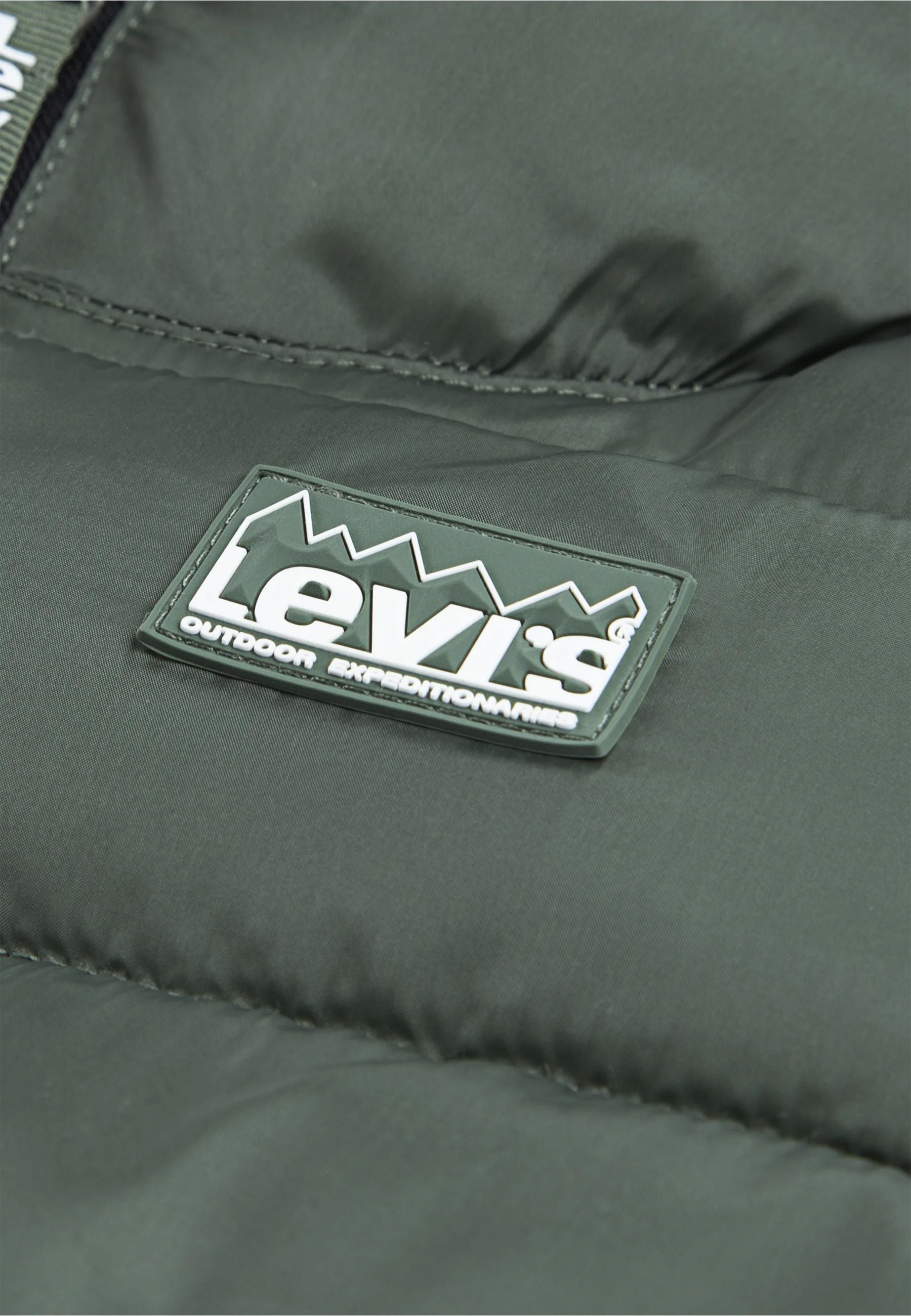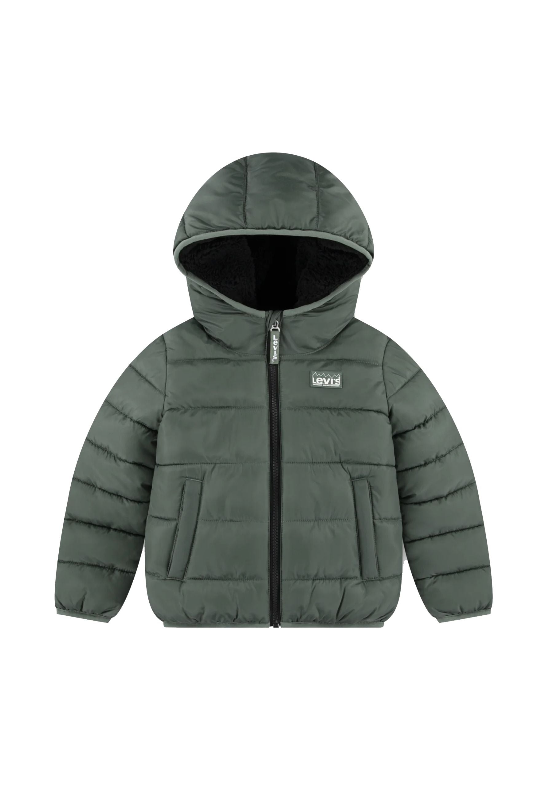 Levis Piumino Verde Tinta Unita Foderato in Sherpa Orsetto con Cappuccio