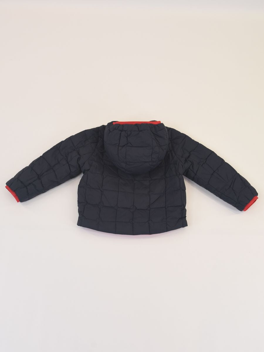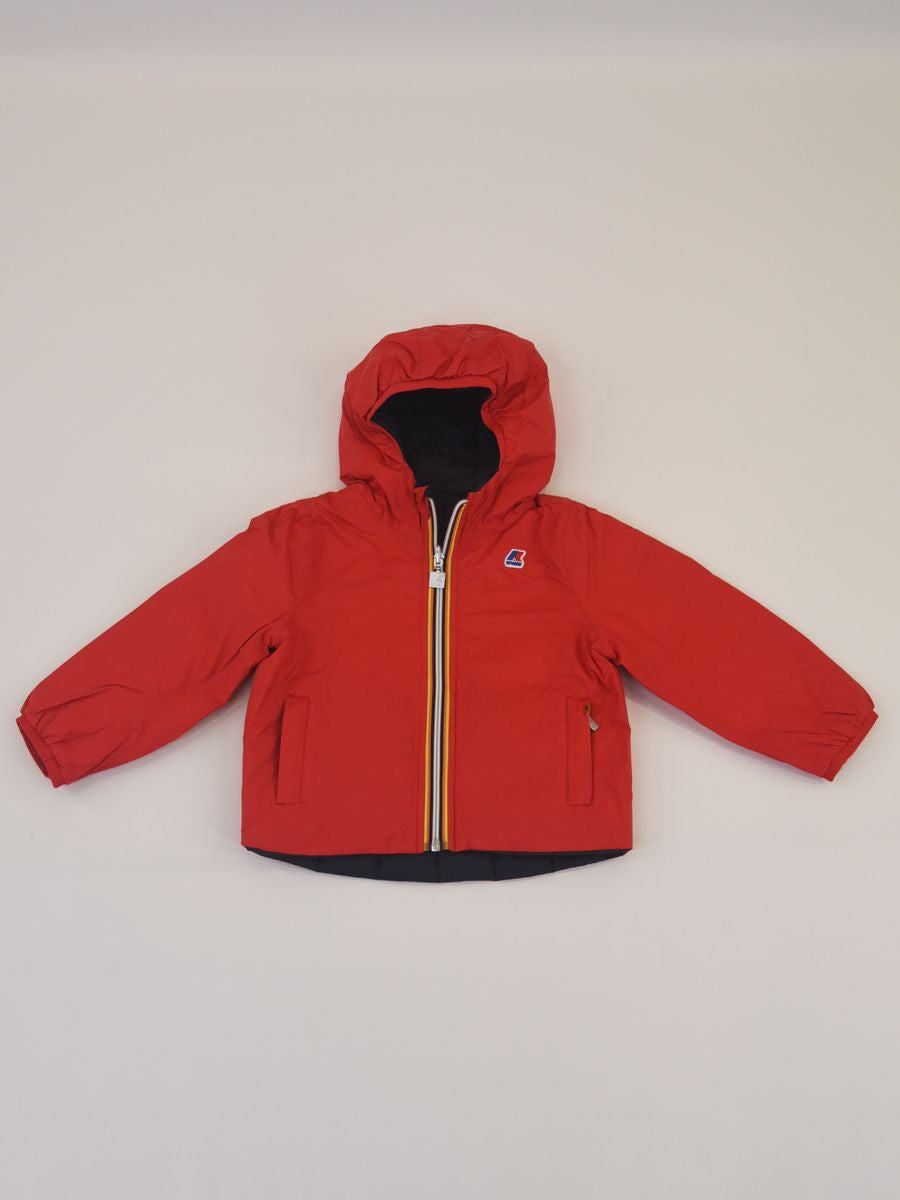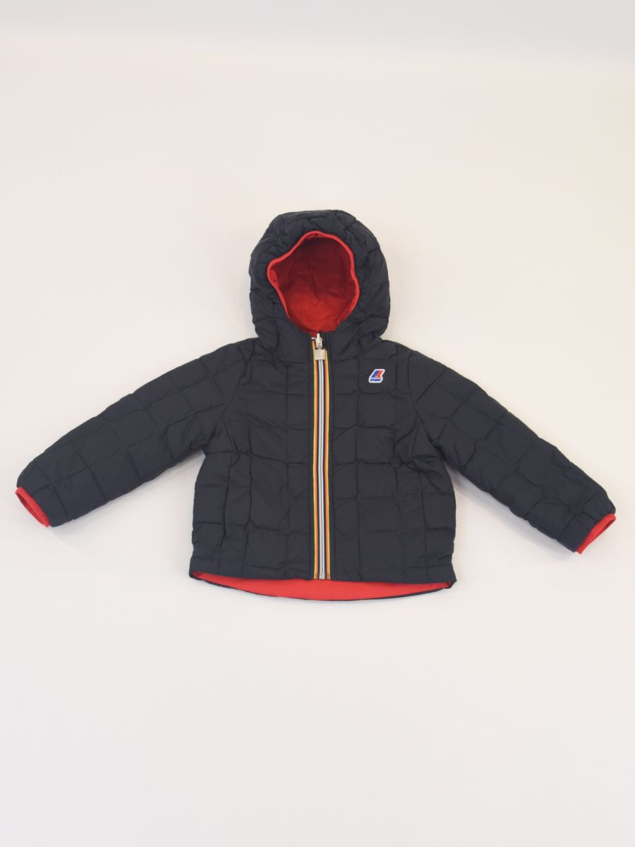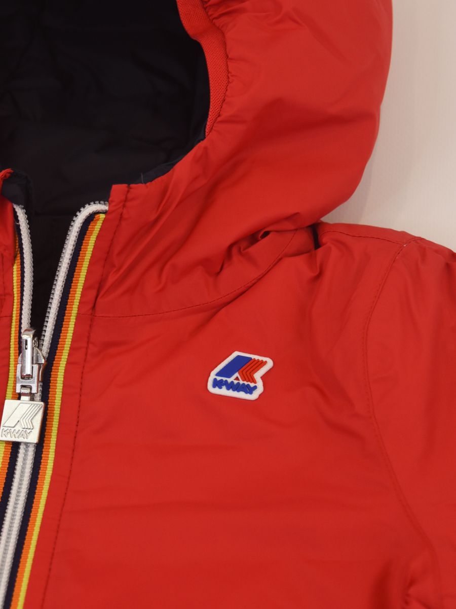 Jacques Thermo Plus Daunenjacke. Die kurze Jacke Jacques ist für das raueste Klima konzipiert und hat ein wendbares Design, um jeden Tag neue Kombinationen zu kreieren. Das Modell besteht auf einer Seite aus glattem technischem Stoff und auf der anderen Seite aus gestepptem Nylon in einer Kontrastfarbe. Ausgestattet mit echter Daunenfüllung, die ein hohes Maß an Wärme bietet, und den ikonischen K-Way-Funktionsdetails, die vor Kälte schützen.