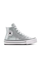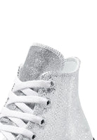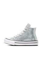 Sneakers Chuck Taylor All Star Lift Platform Disco Glitter in argento realizzate con finitura glitterata brillante effetto disco capaci di catturare la luce ad ogni passo tomaia luminosa che dona carattere e vivacità suola platform rialzata che slancia la figura e offre comfort versatile ideale per creare look moderni e distintivi adatte alla stagione Fall Winter.Un prodotto esclusivo distribuito da Bimbivip partner storico affidabile e riconosciuto nel panorama europeo punto di riferimento per chi cerca qualità originalità e garanzia nella scelta di marchi prestigiosi Bimbivip si impegna ogni giorno a offrire un’esperienza d’acquisto appagante sicura e soddisfacente diventando complice perfetto delle famiglie che desiderano stile autenticità e valore